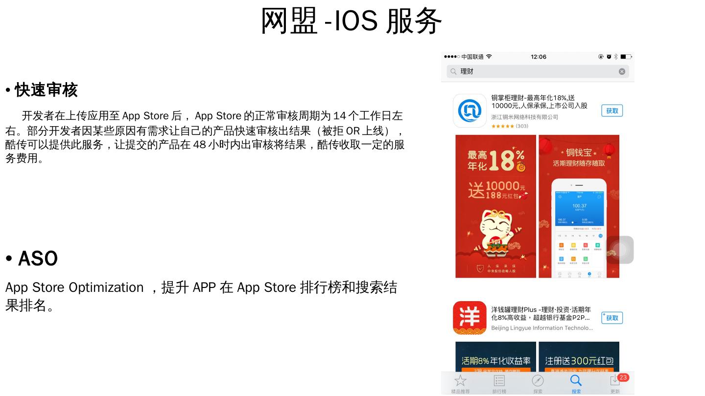 开发者在上传应用至App Store后,App Store的正常审核周期为14个工作日左右。 ... 完全托管投放; 测试成本周期短,最短时间竞价上位置,最低成本获取最大曝光 ...