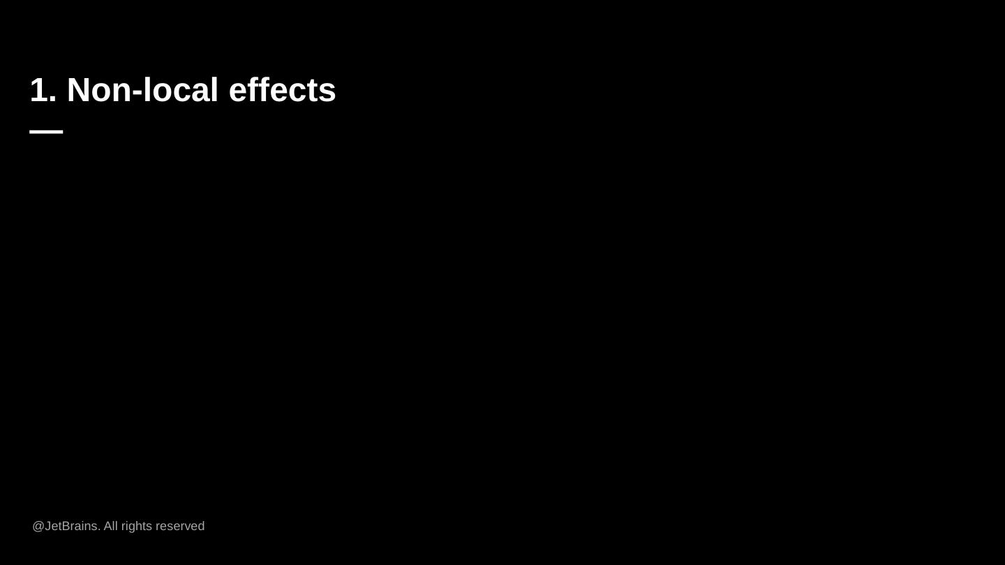 Kotlin Compiler. —. Саввинов Дмитрий. 1. Non-local effects. —. @JetBrains. All rights reserved. Преамбула. —. @JetBrains. All rights reserved ...