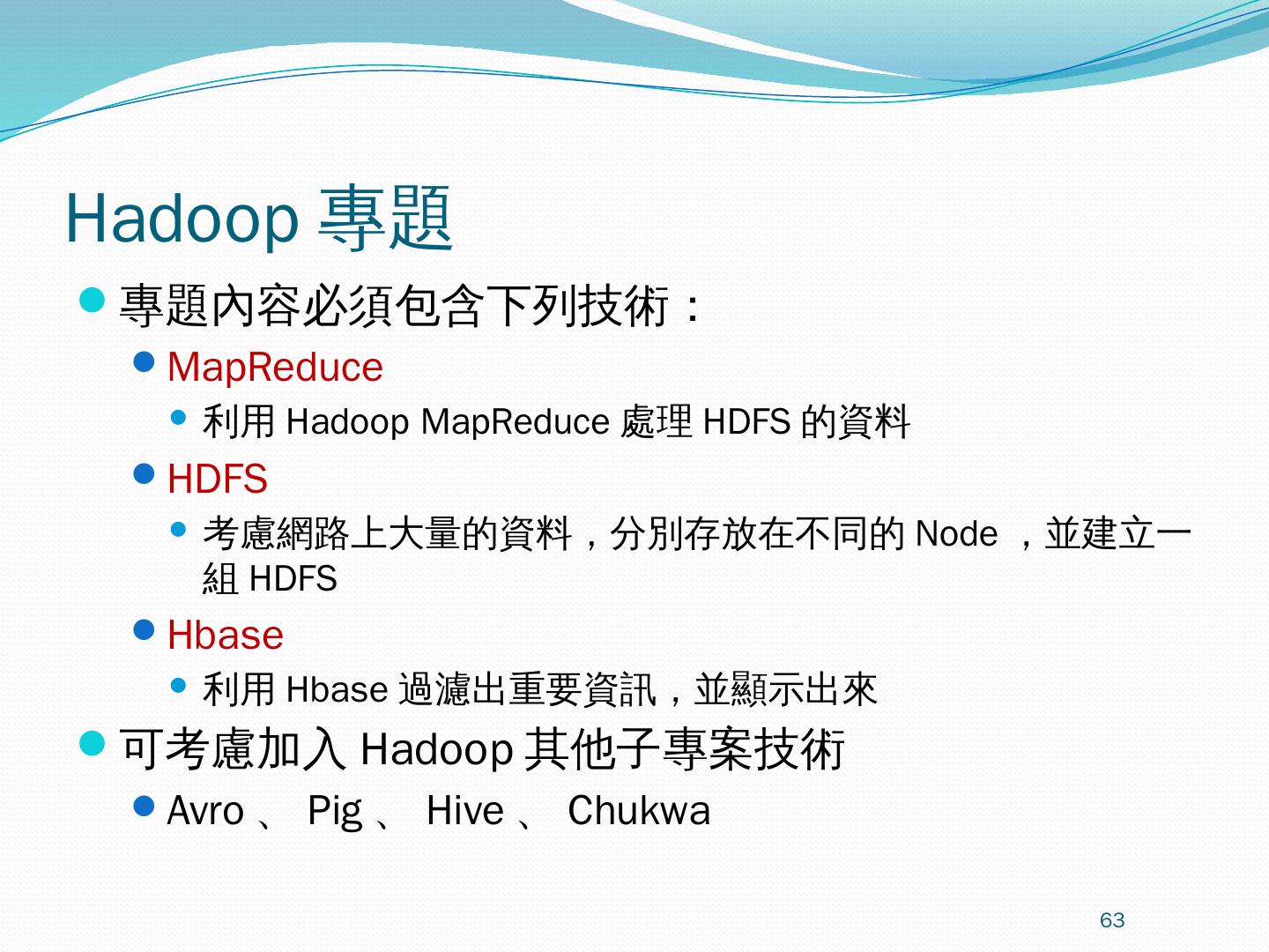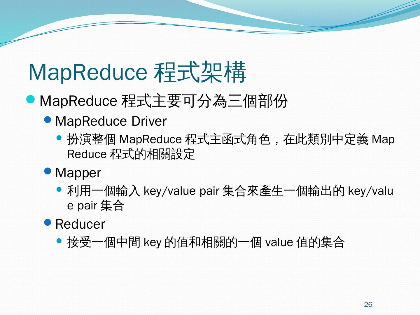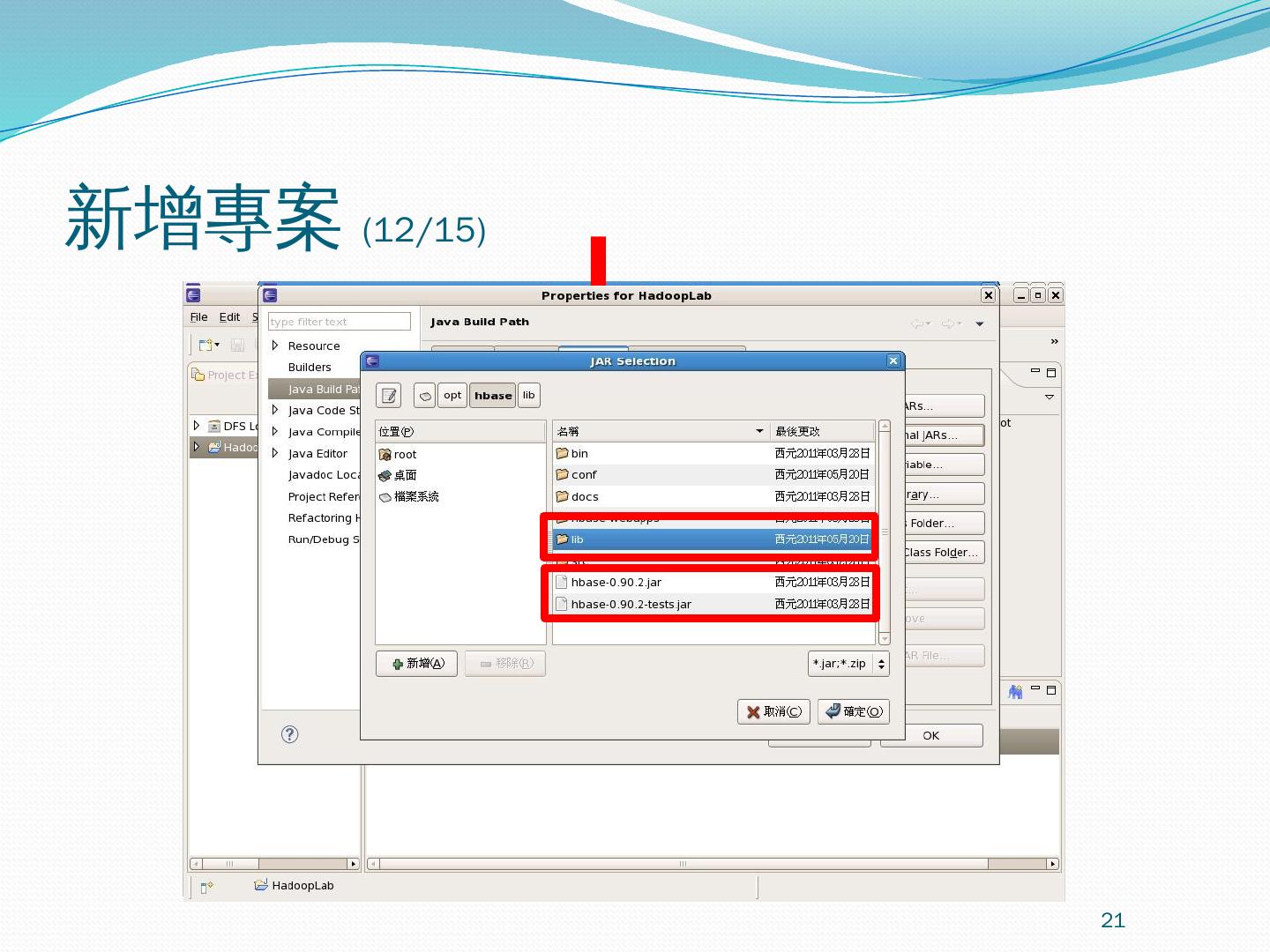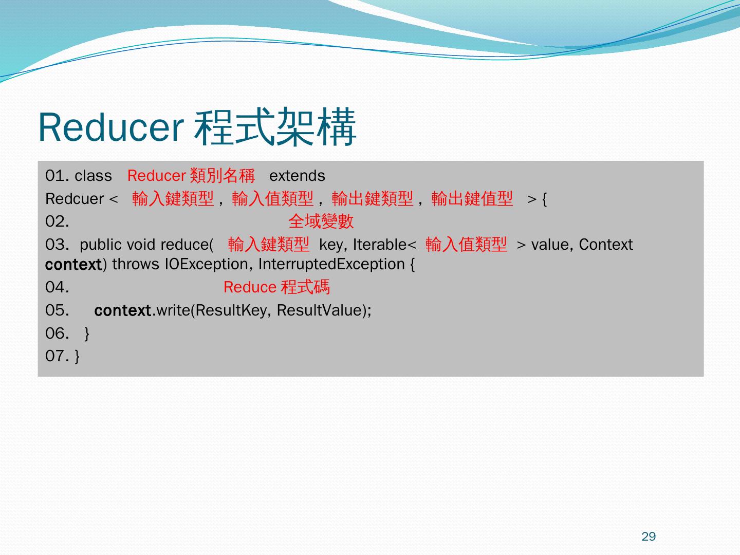 使用Hadoop實作MapReduce. Outline. 開發環境設定; 新增專案; MapReduce程式架構; MapReduce基礎實作範例; MapReduce進階實作範例; Hadoop MapReduce ...