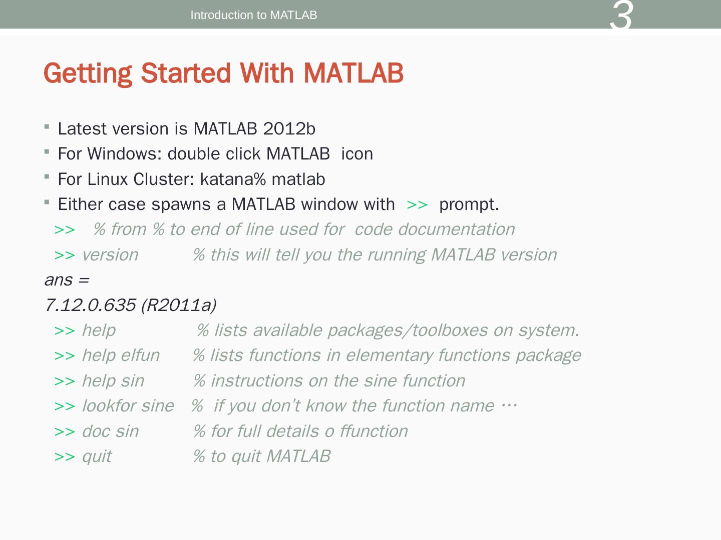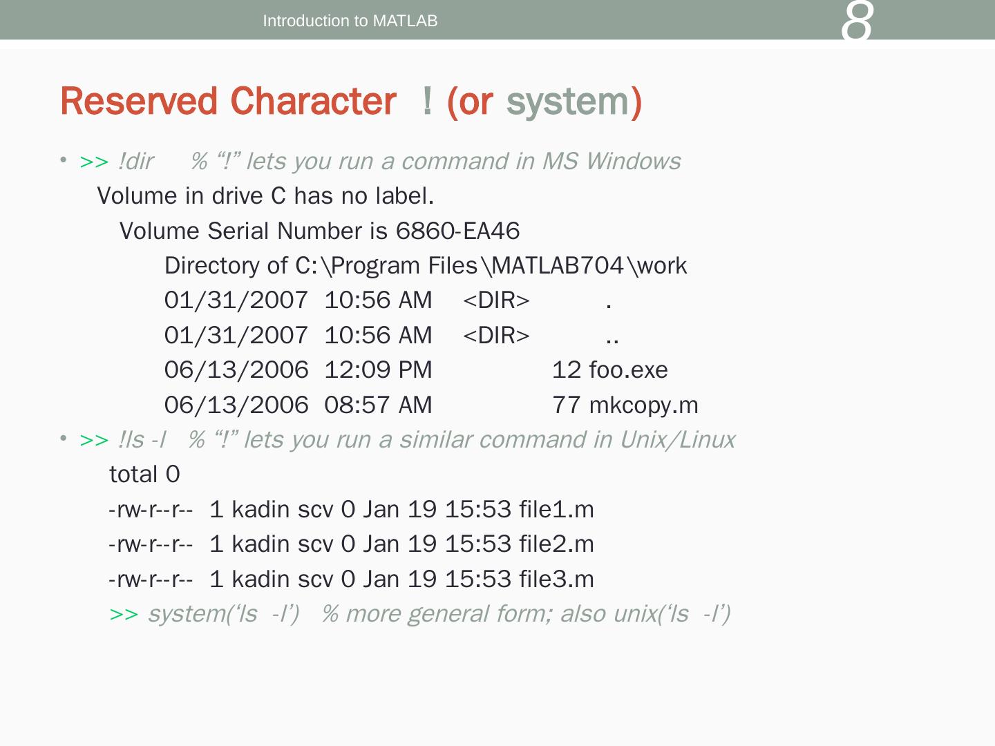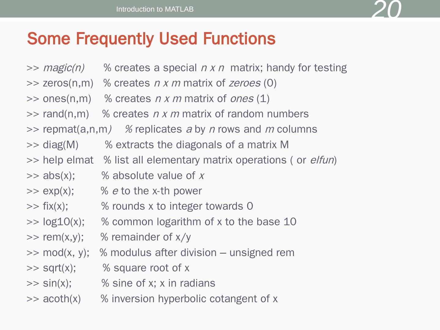 MATLAB command files should be named with a suffix of ".m", e.g., myfile.m. An m-file typically contains a sequence of MATLAB commands that will be executed ...