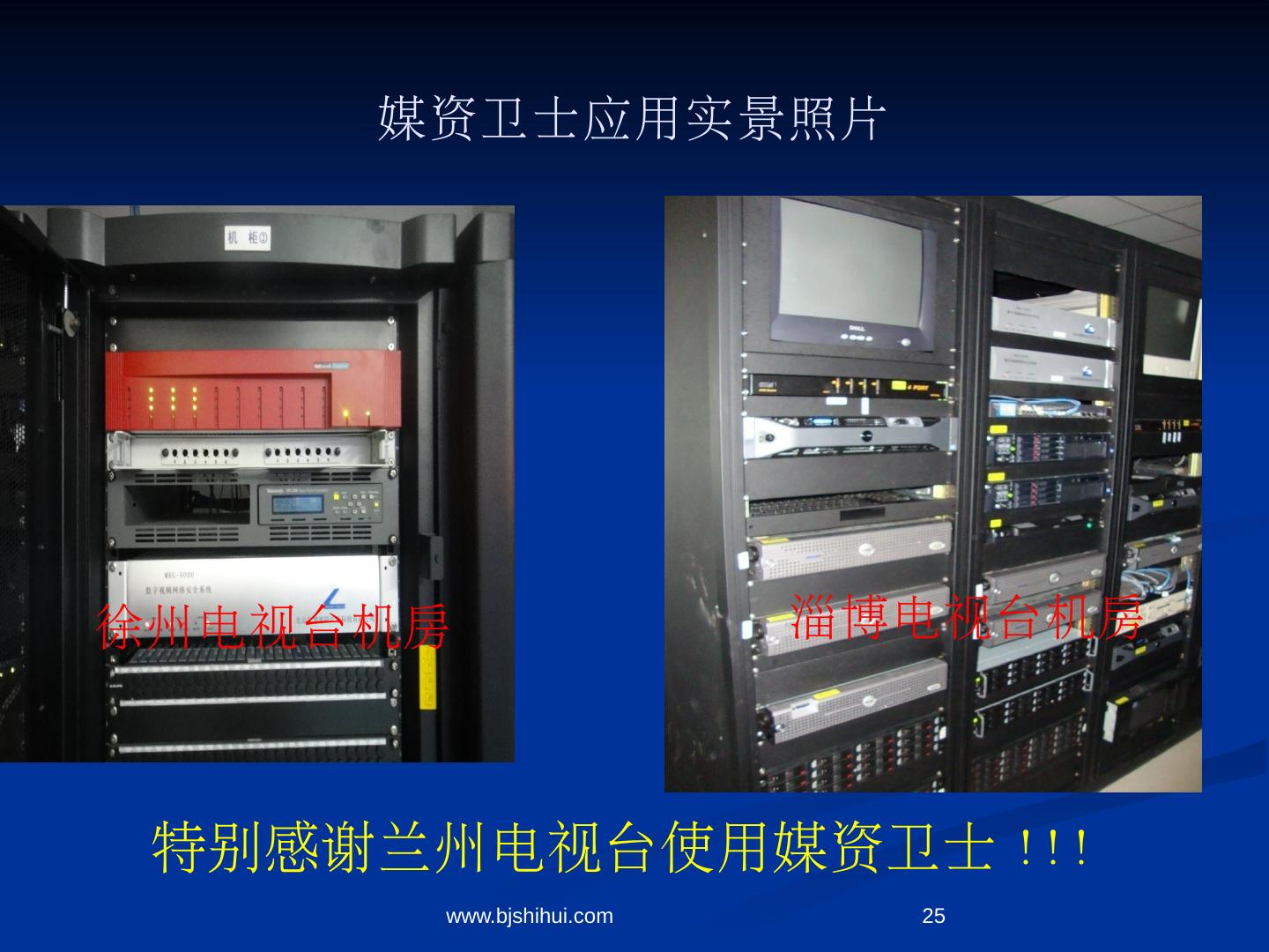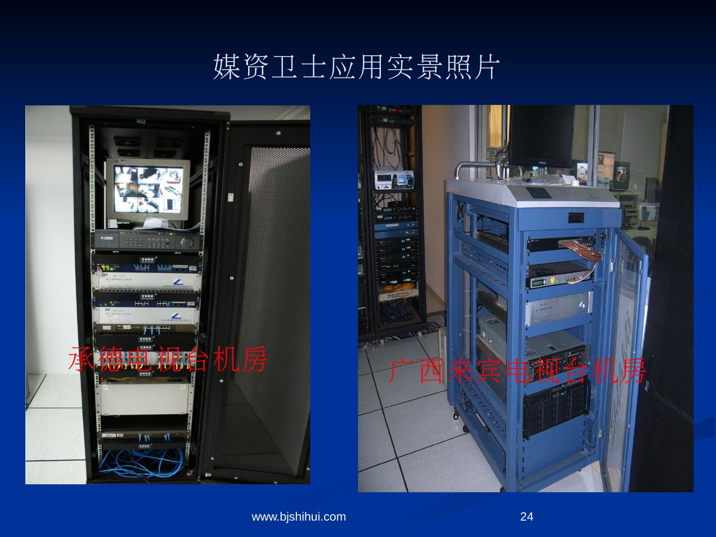 24 .媒资卫士应用实景照片 24 www.bjshihui.com 承德电视台机房 广西来宾电视台机房