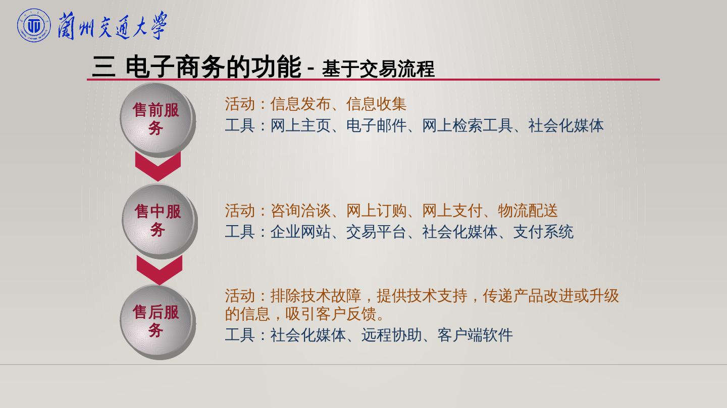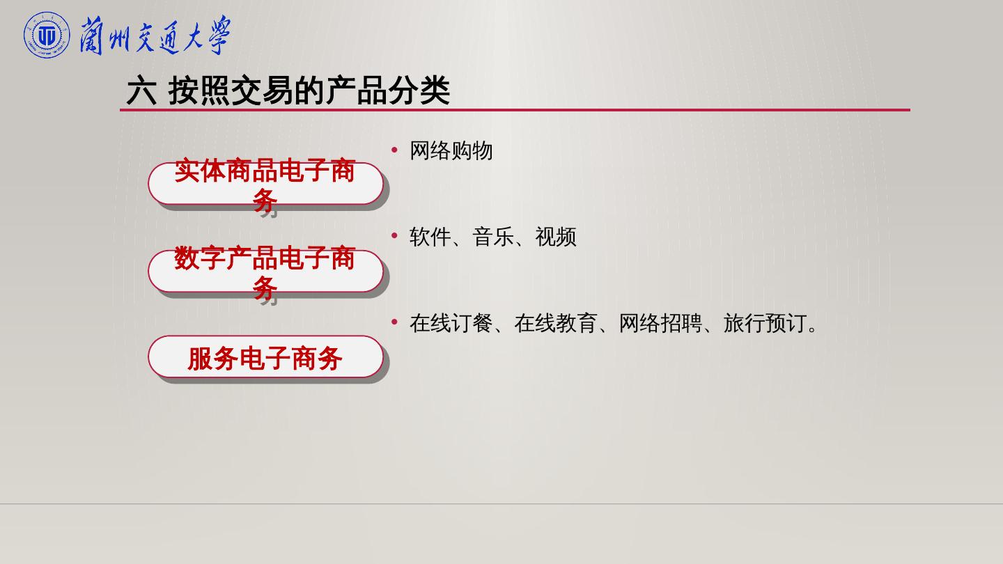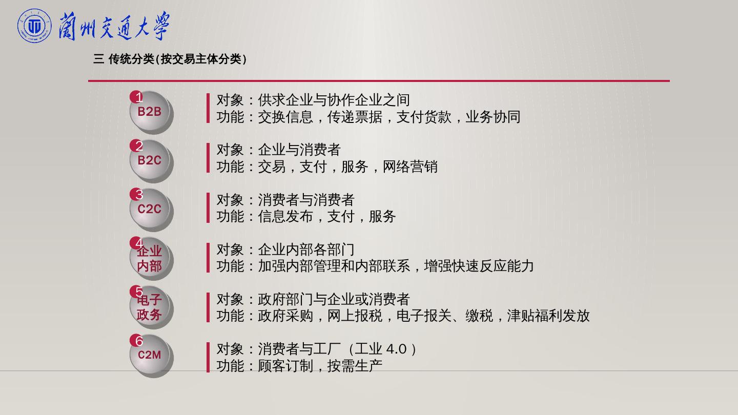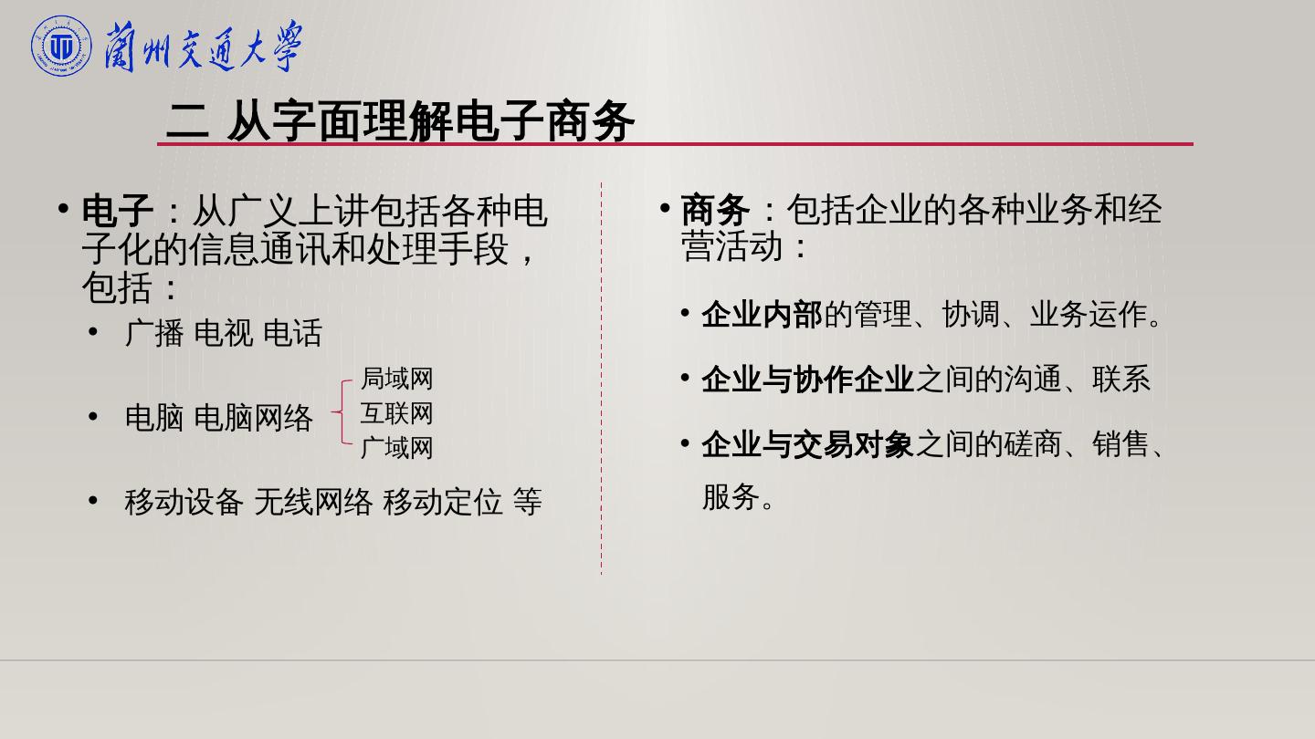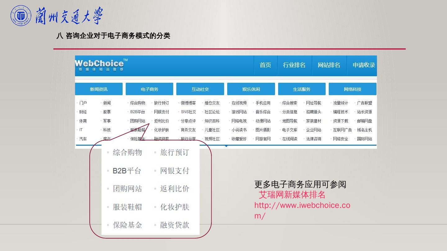 第一章 电子商务概论 ... 利用计算机和信息系统使大部分经营流程自动化运作的企业 ... 设施; (用于将商业信息与电子商务系统相结合的技术,数据库,网络服务,ERP).