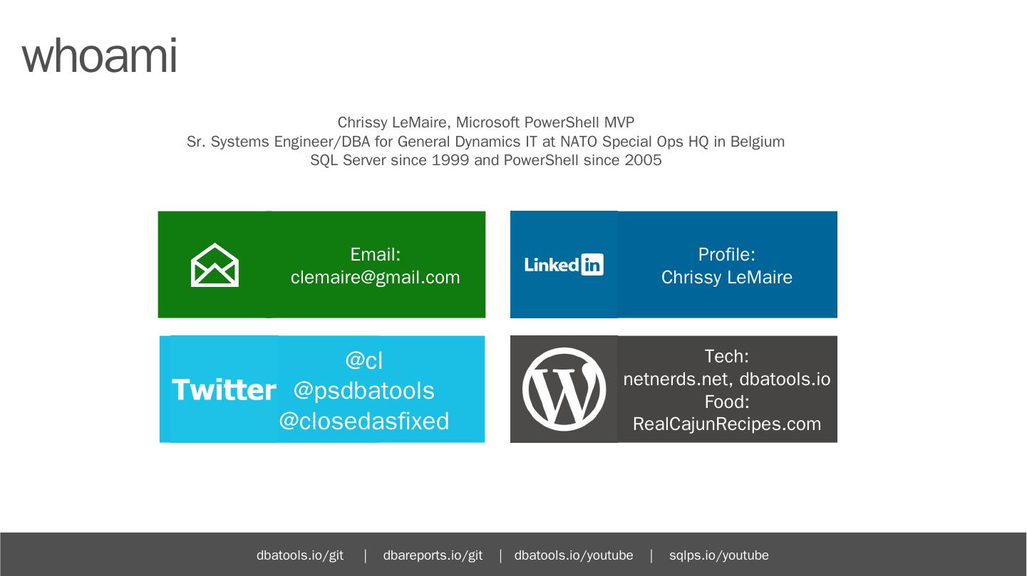 Contributing to Open Source PowerShell Projects using GitHub for Windows. Chrissy LeMaire PowerShell MVP. |. Agenda. dbatools.io/git | dbareports.io/git ...