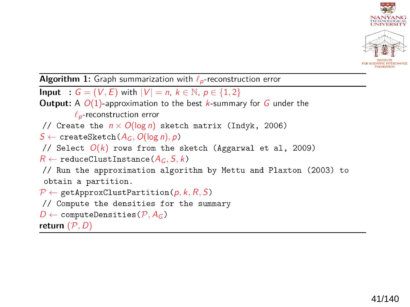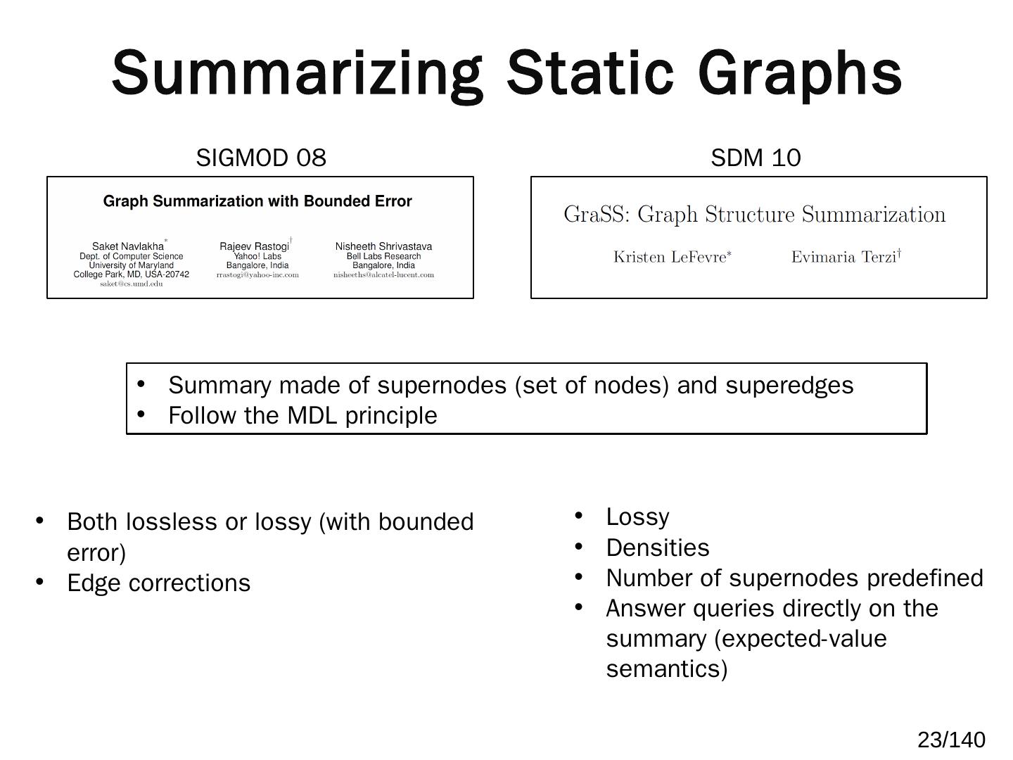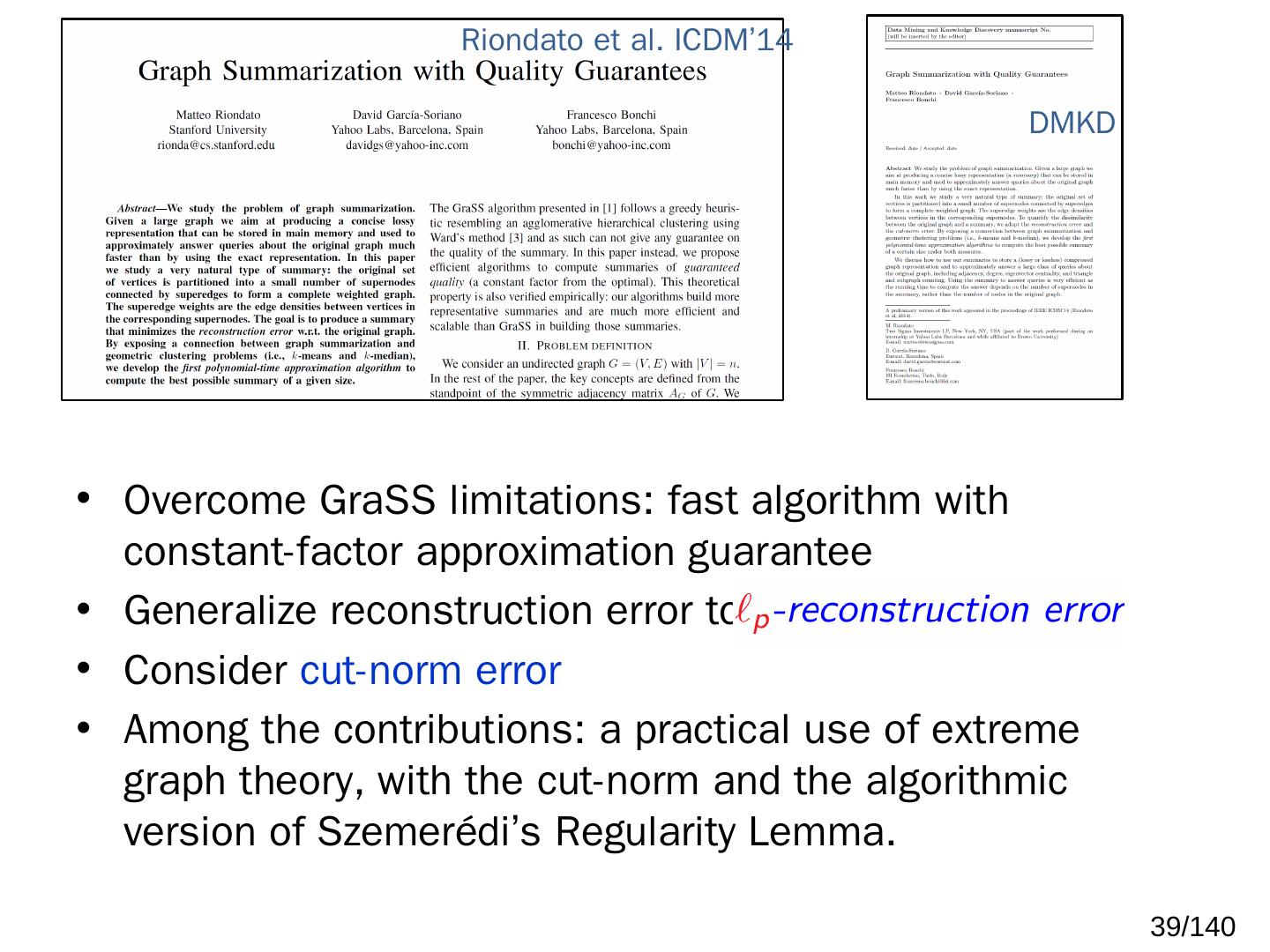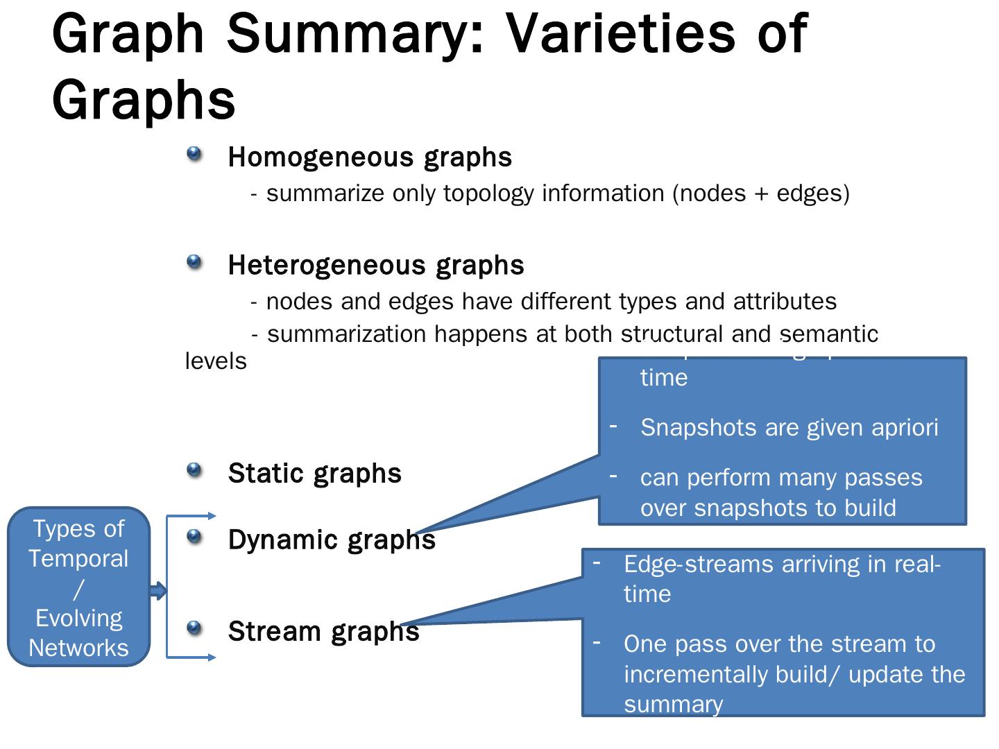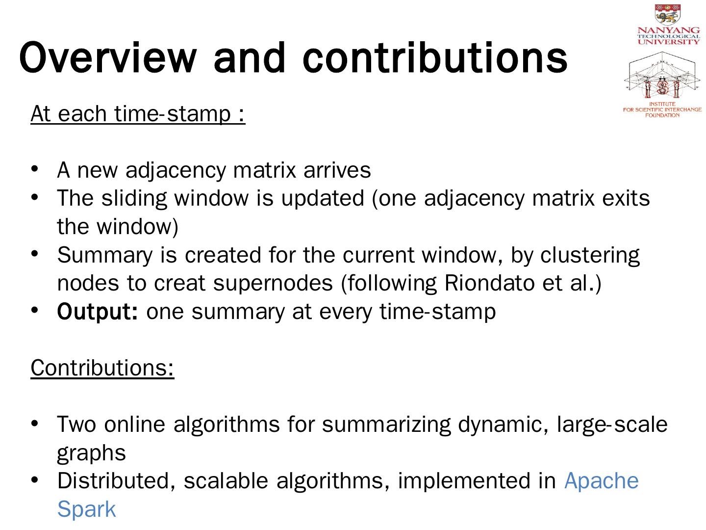 Two online algorithms for summarizing dynamic, large-scale graphs; Distributed, scalable algorithms, implemented in Apache Spark. Algorithms. Baseline:.