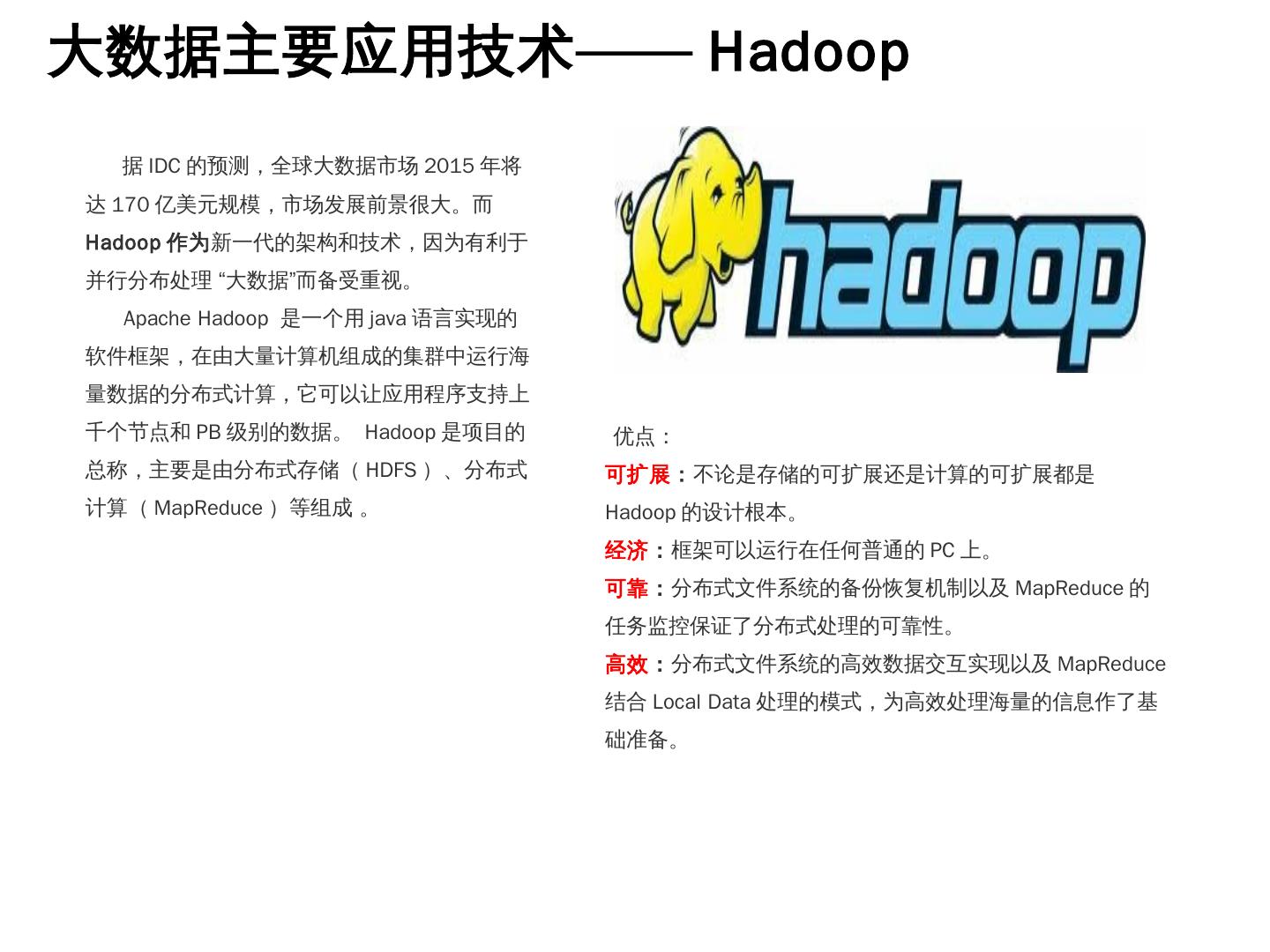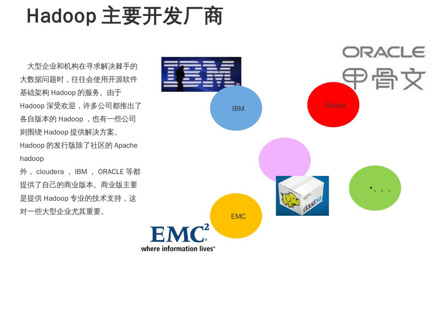 Apache Hadoop 是一个用java语言实现的软件框架,在由大量计算机组成的集群中 .... 就是能够与Greenplum数据库进行整合,Pivotal HD和HAWQ让EMC在Hadoop ...