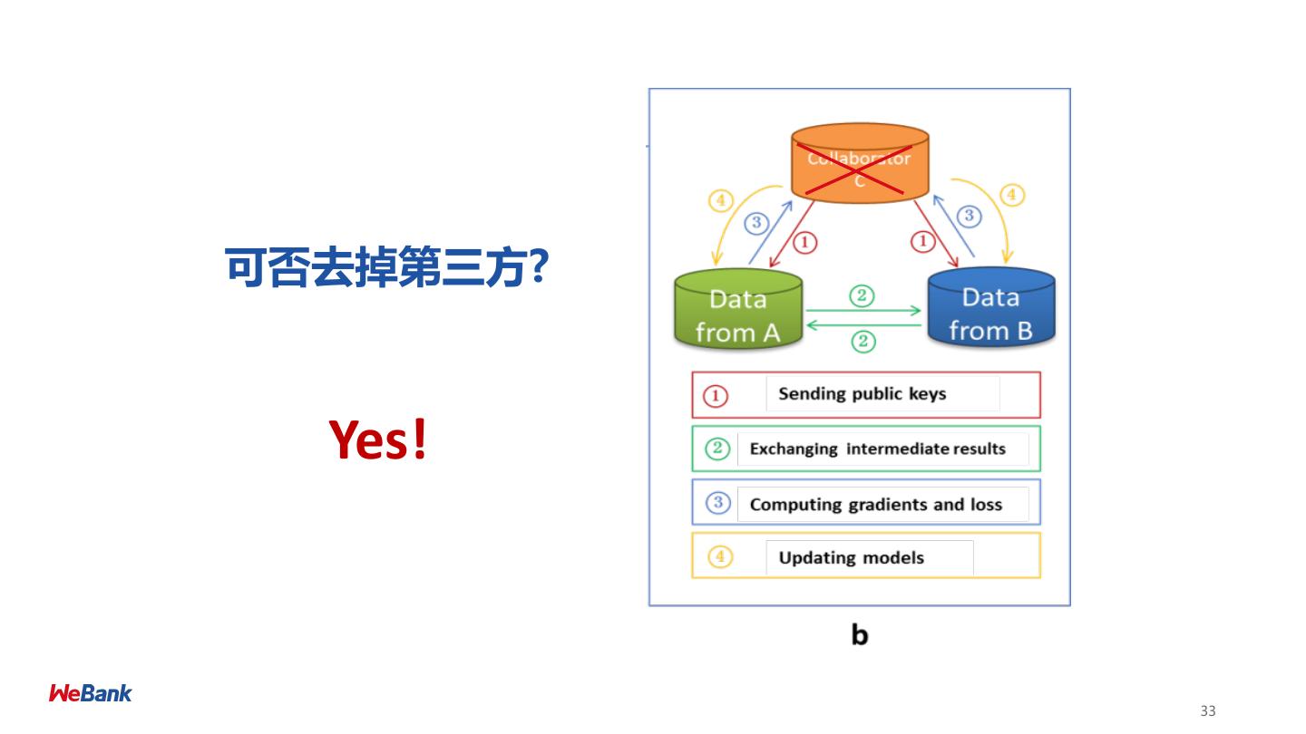 24 .联邦学习系统 Architecture of Vertical Federated Learning • Each Site Holds Own Data • Performance is LOSSLESS • Solution for Common Users 24