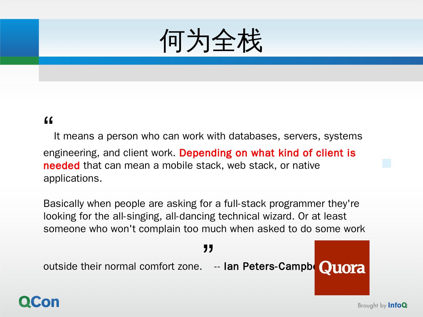 好吧,我承认我做不到:扛服务器,搞定CPU和编译器,切图,JS…… 毕竟 ... 熟悉其原理和API; 完整的运维和监控; 熟悉应用场景和模式; 帮助其他程序员接入. 不需要.