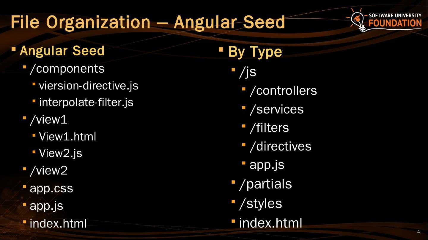 AngularJS Best Practices. High Quality SPA Applications. SoftUni Team. Technical Trainers. Software University. http://softuni.bg. Table of Contents.