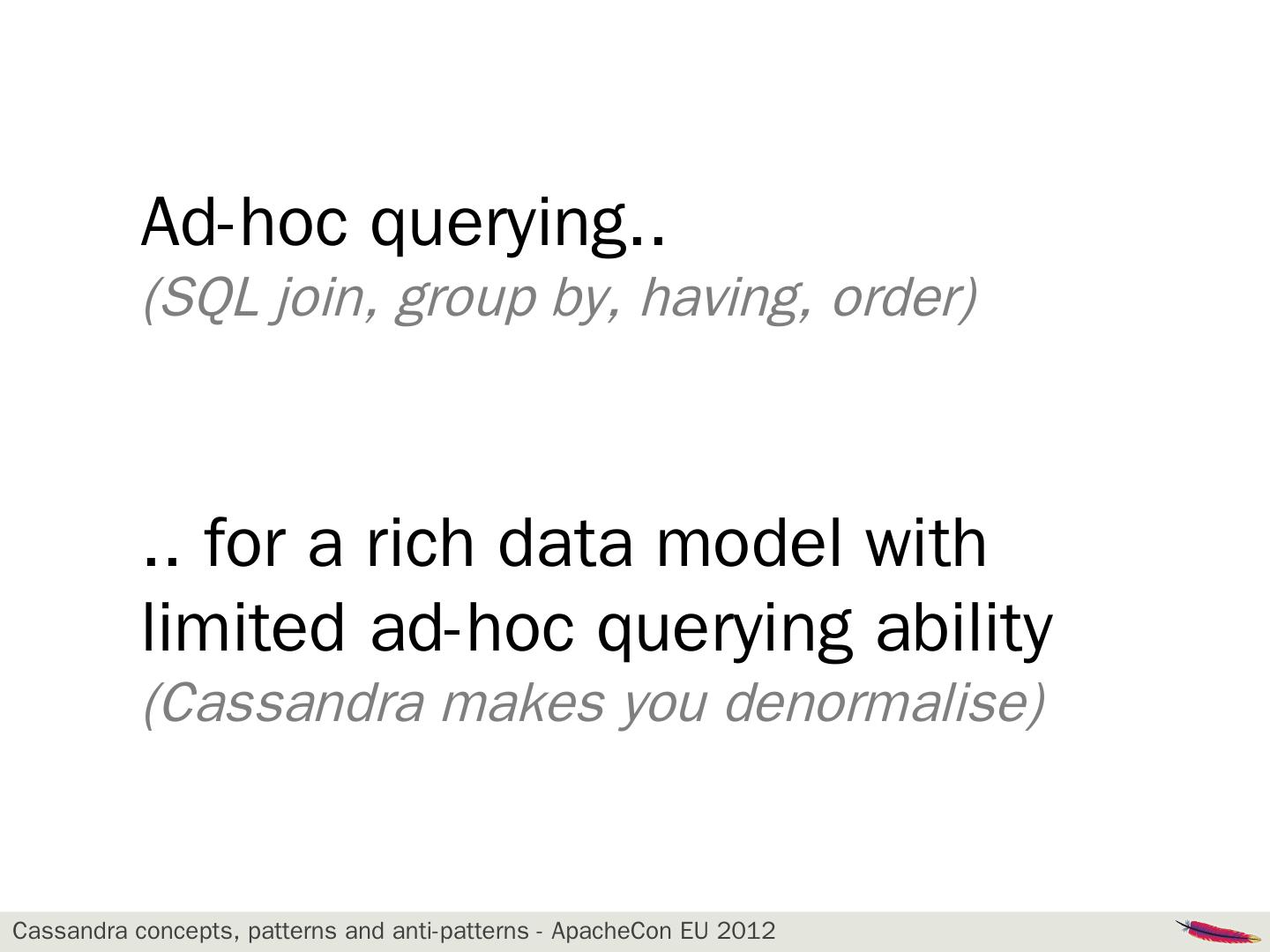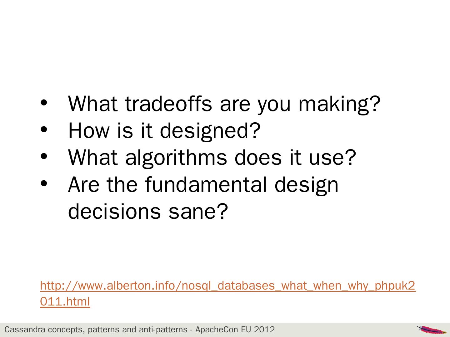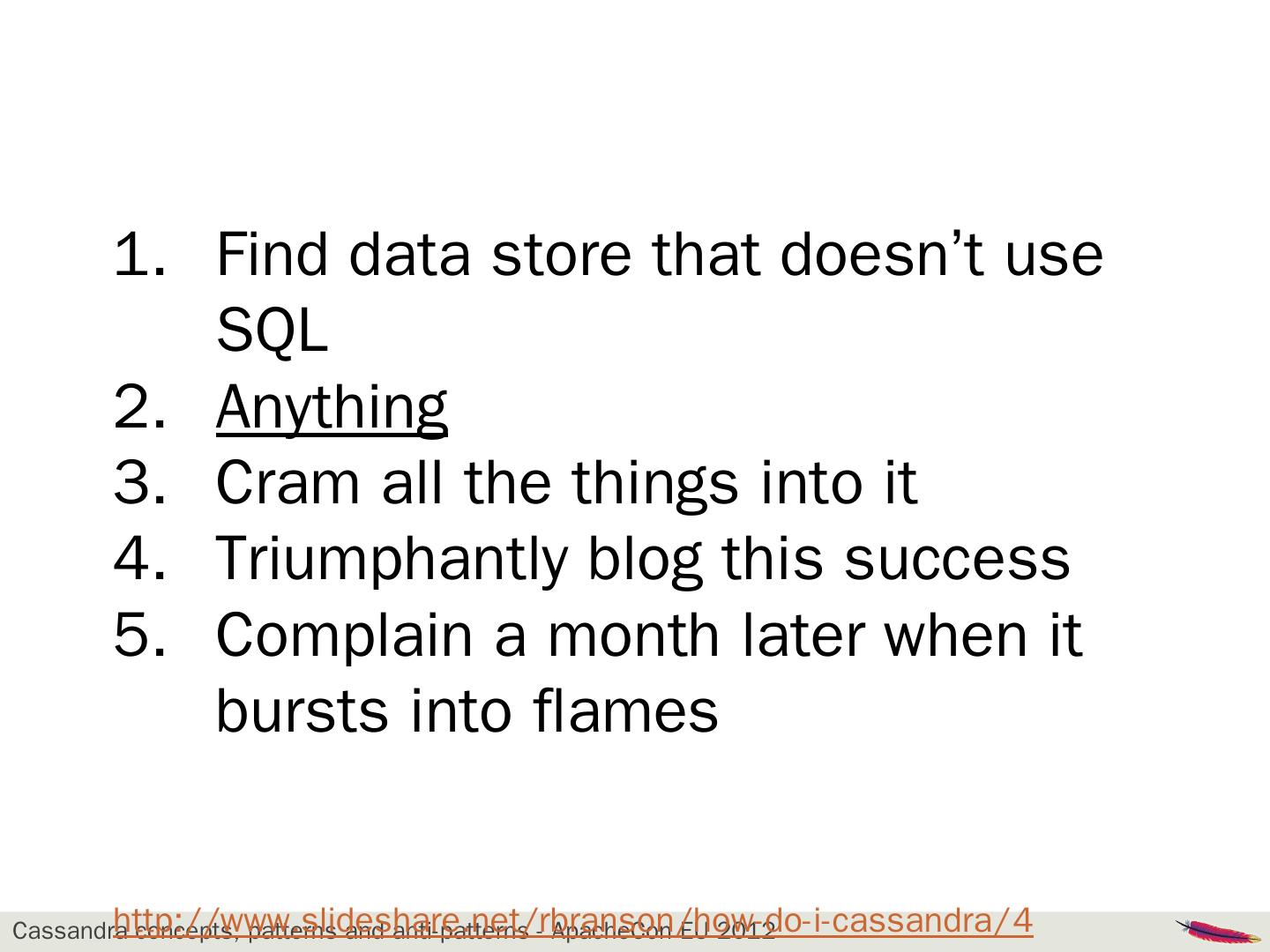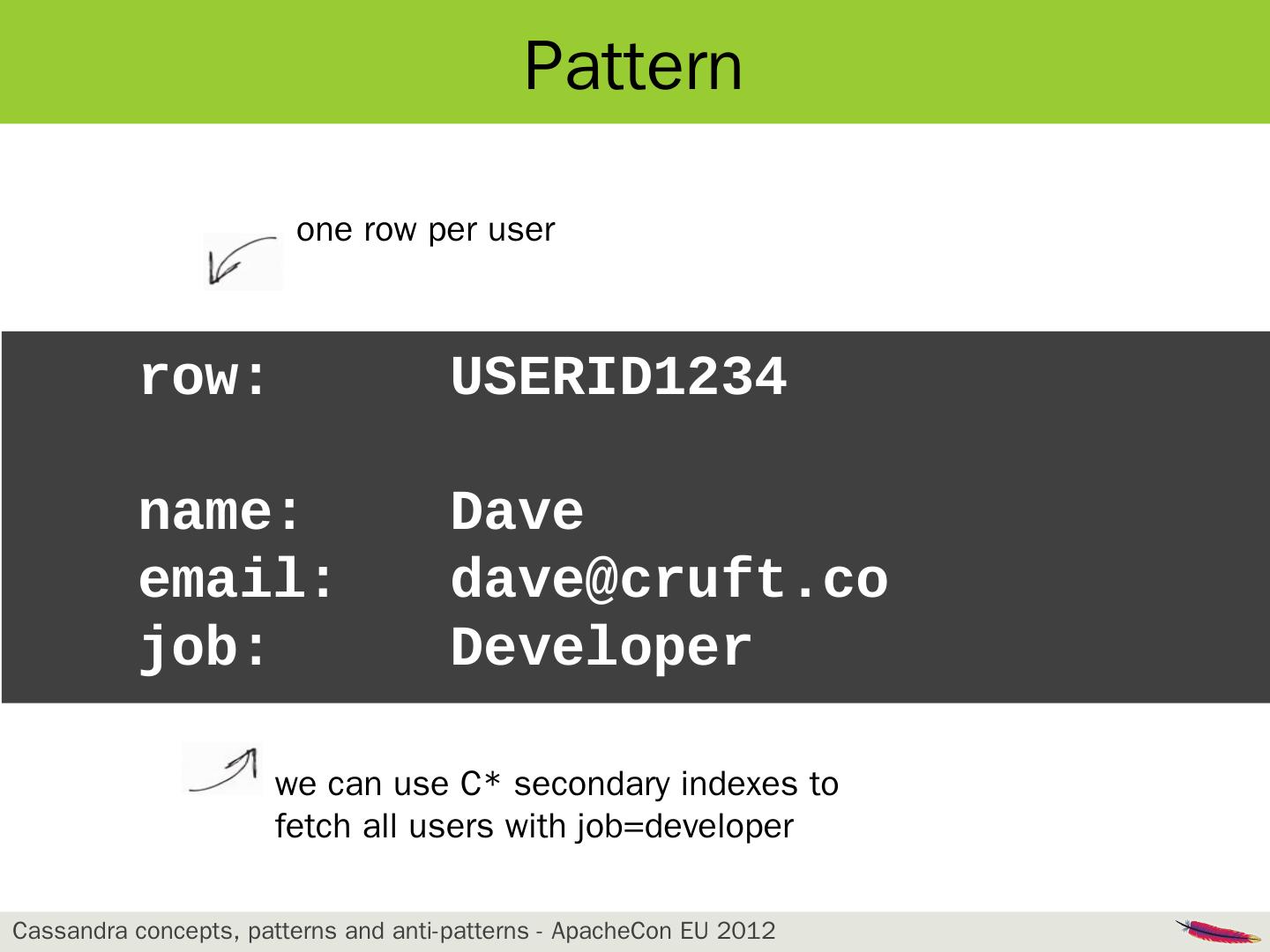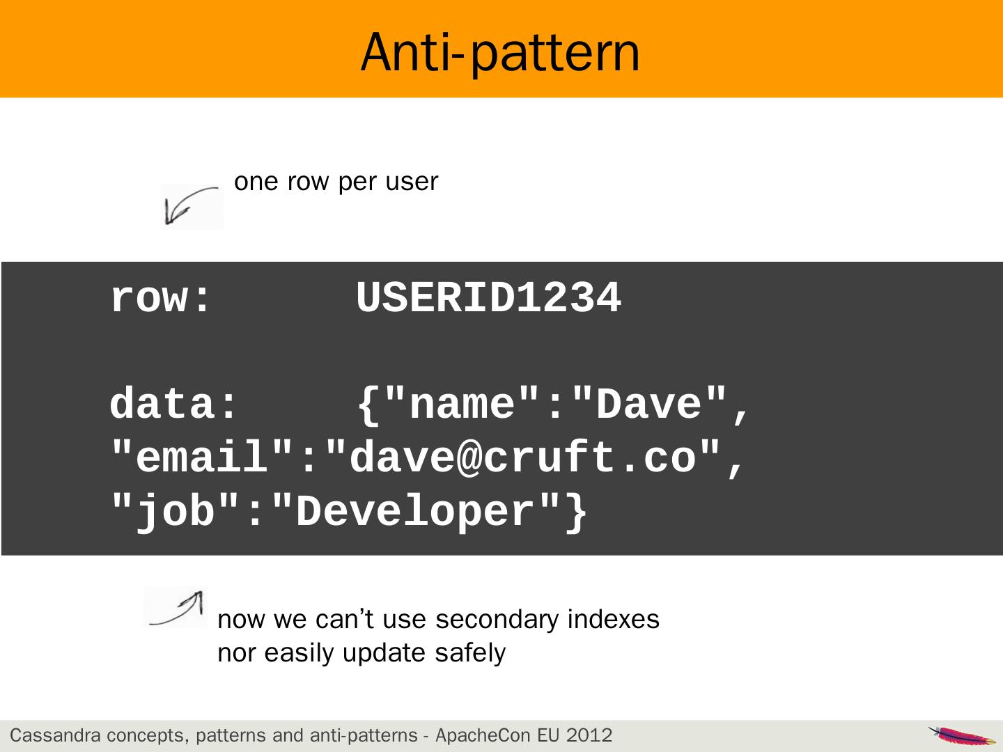 Cassandra concepts, patterns and anti-patterns - ApacheCon EU 2012. Cassandra concepts, patterns and anti-patterns. Dave Gardner. @davegardnerisme.