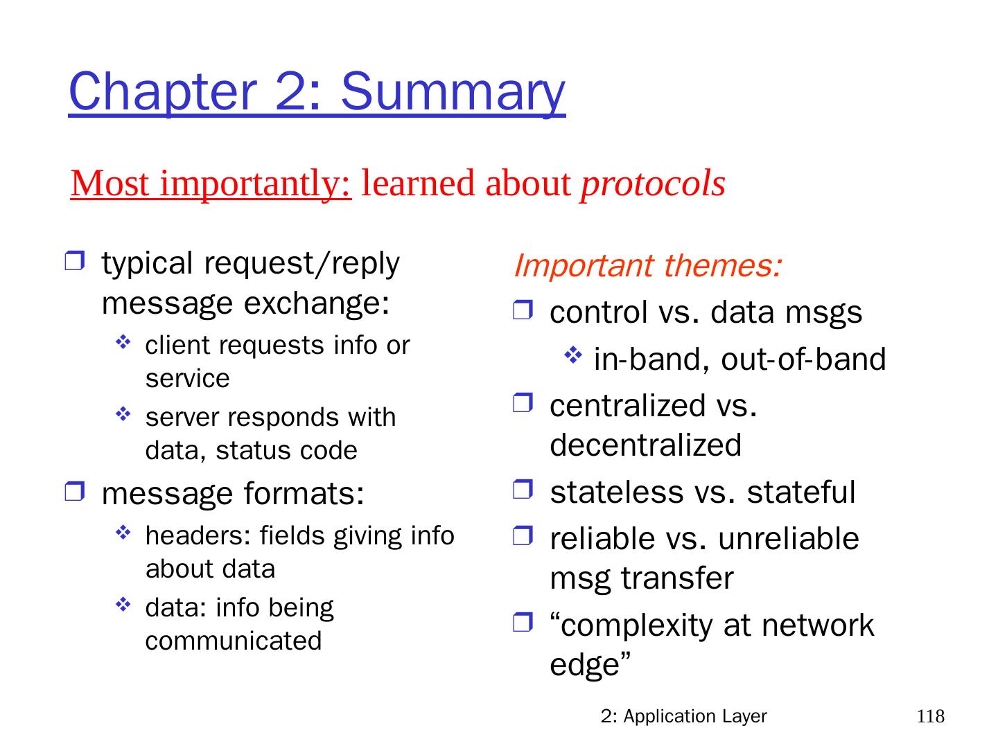 15 .2: Application Layer 15 App-layer protocol defines Types of messages exchanged, e.g., request, response Message syntax: what fields in messages & how fields are delineated Message semantics meaning of information in fields Rules for when and how processes send & respond to messages Public-domain protocols: defined in RFCs allows for interoperability e.g., HTTP, SMTP, BitTorrent Proprietary protocols: e.g., Skype, ppstream