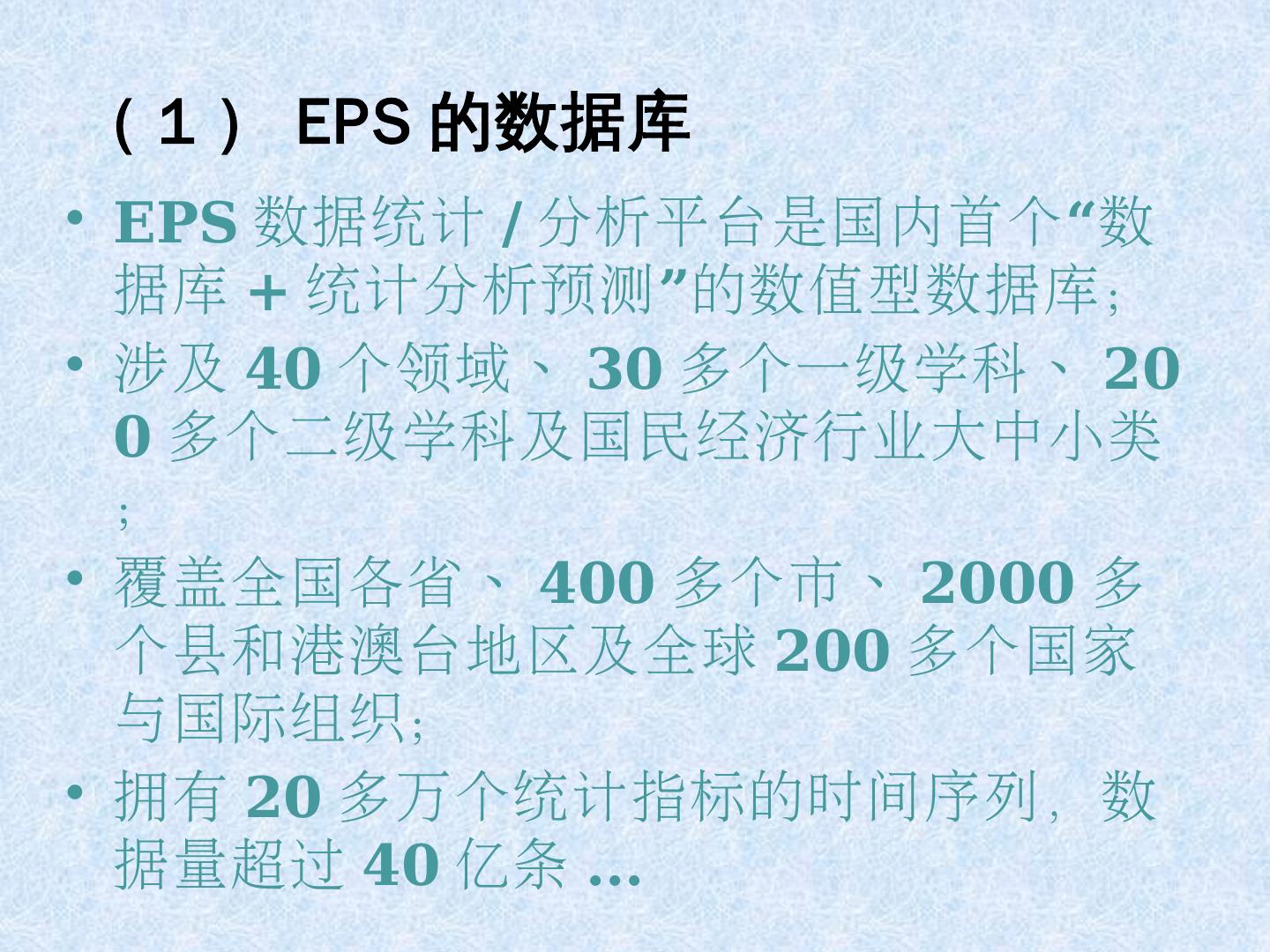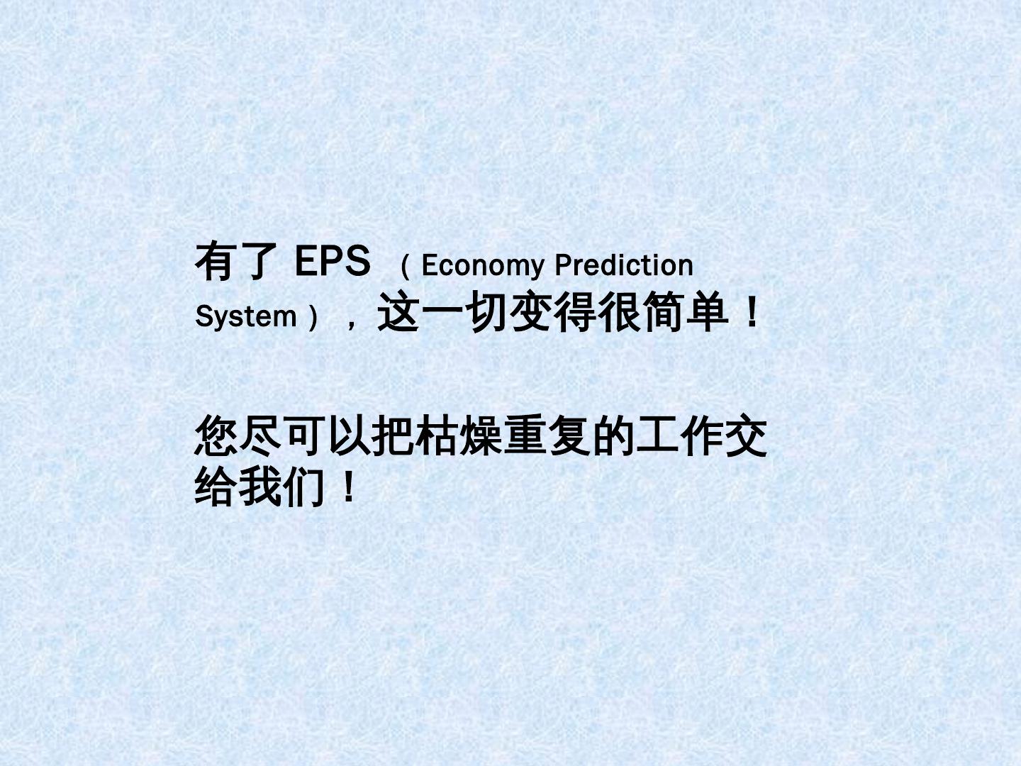 北京福卡斯特信息技术有限公司. EPS数据 ... 大数据时代来临, 数据已深入 ... 是一个兼具海量数据和分析预测系统的经济性数据平台。 让全方位的 ...