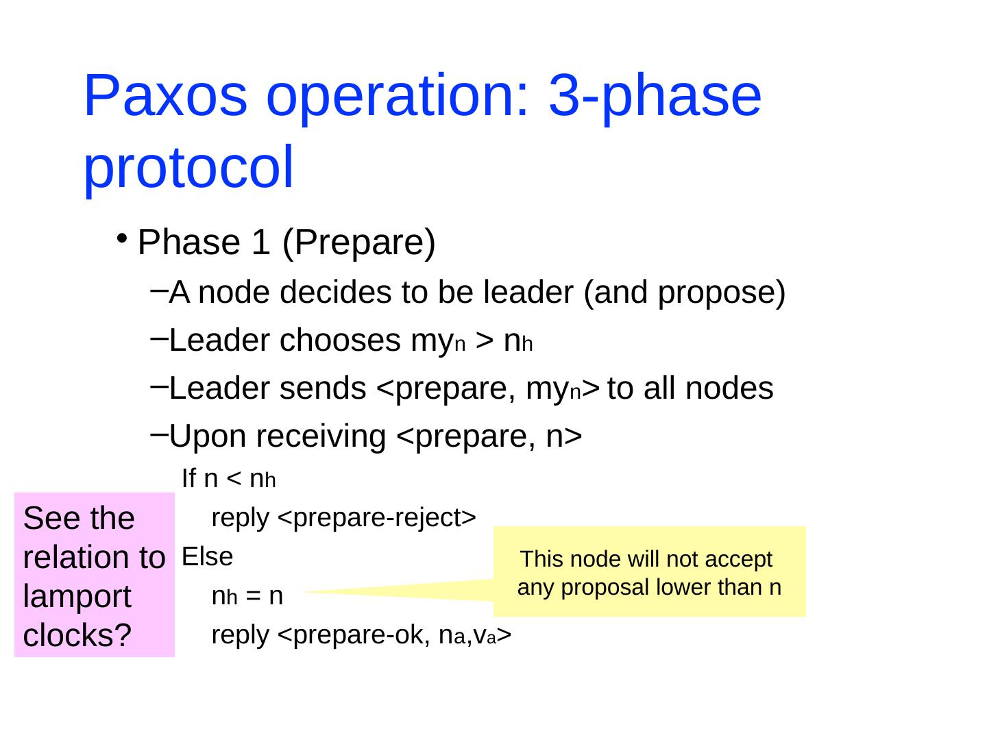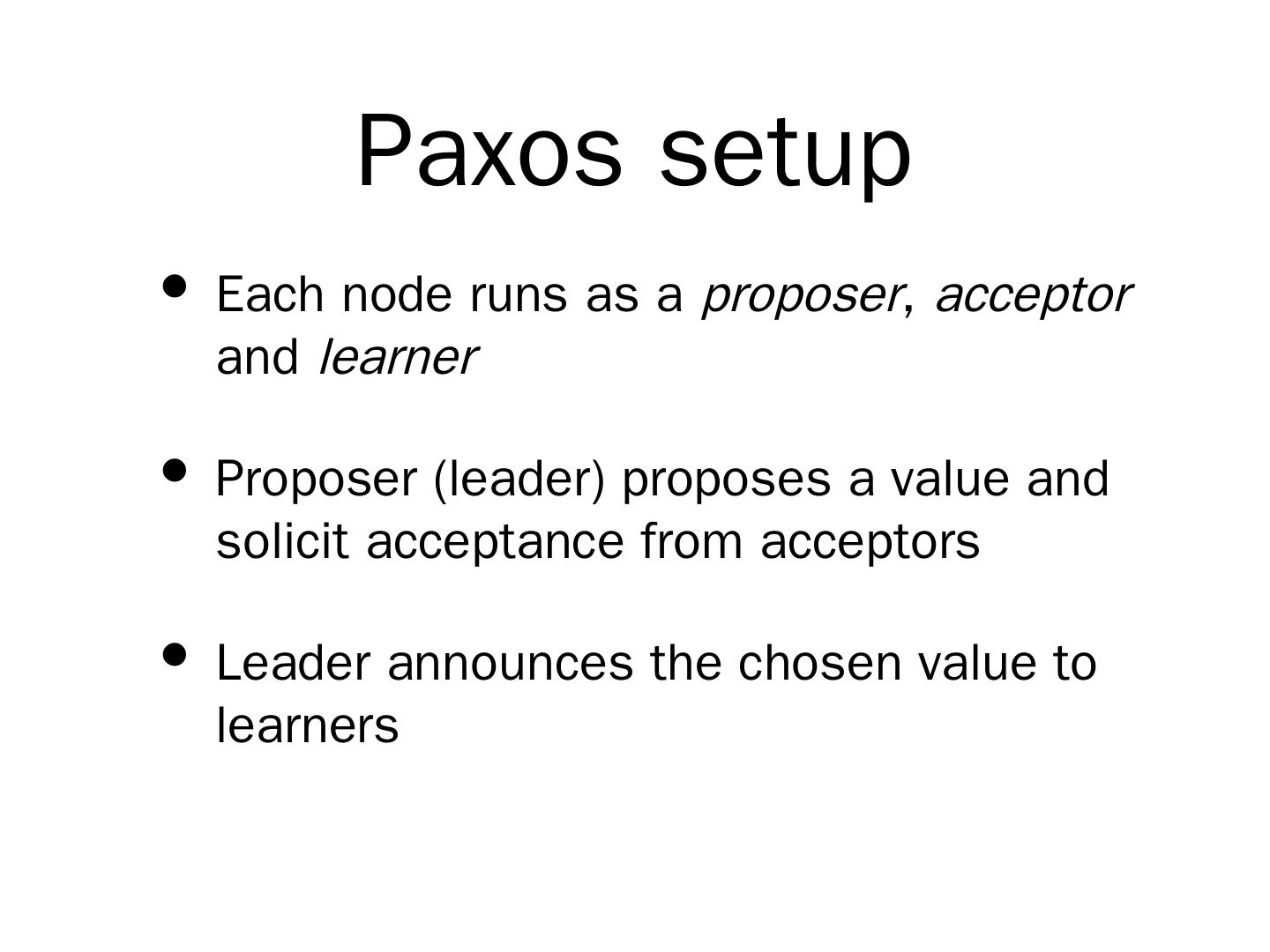 Paxos [Lamport]. quorum consensus usually boils down to the Paxos algorithm. Very useful functionality in big systems/clusters. Some notes in advance: Paxos ...