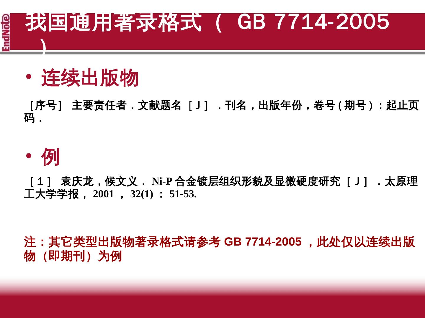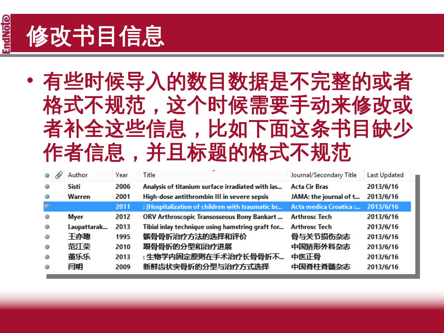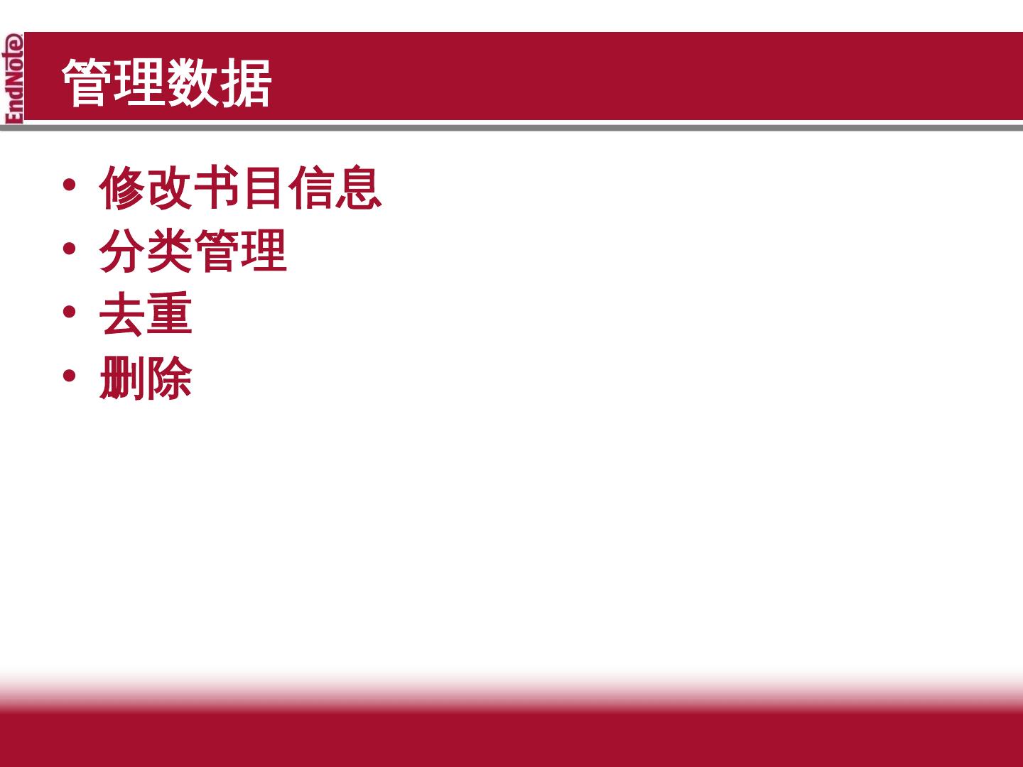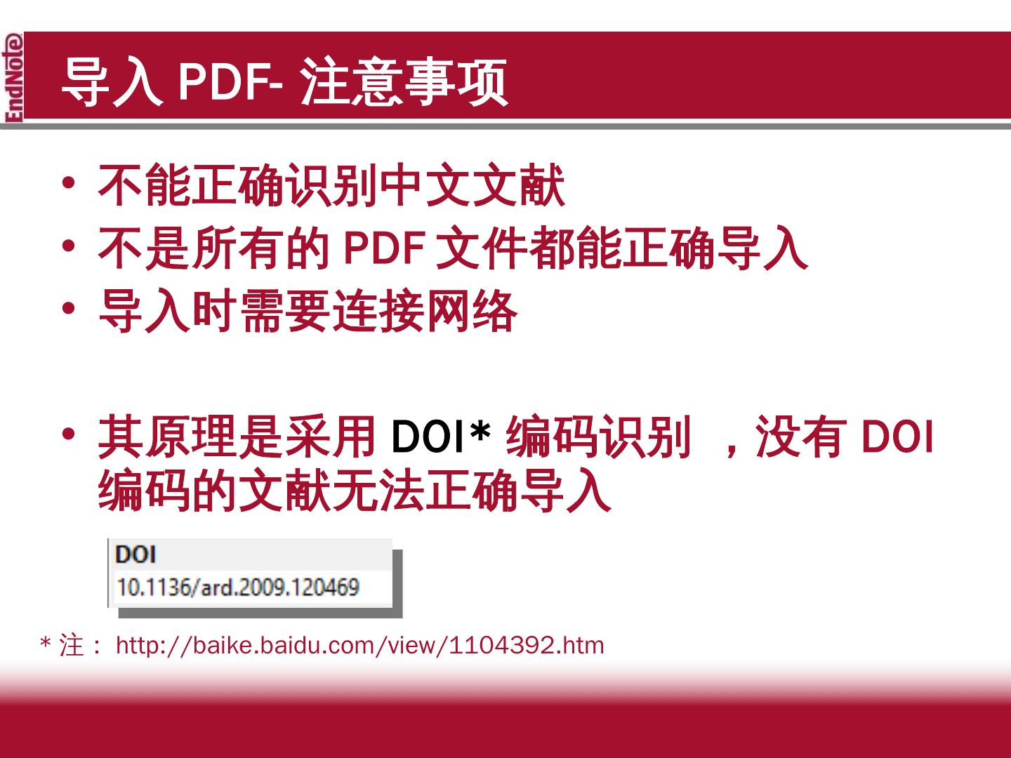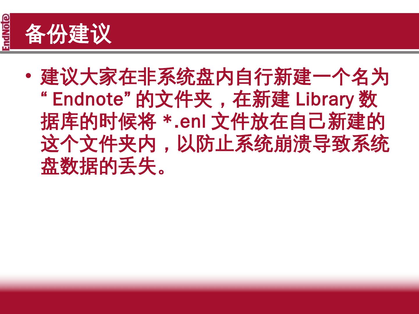 管理操作:全文管理(PDF、图片、表格、其它文档)、合并数据库、分组管理、笔记等 ... 建议大家在非系统盘内自行新建一个名为“Endnote”的文件夹,在新建Library数据库的时候将*.enl ... 其原理是采用DOI*编码识别,没有DOI编码的文献无法正确导入.