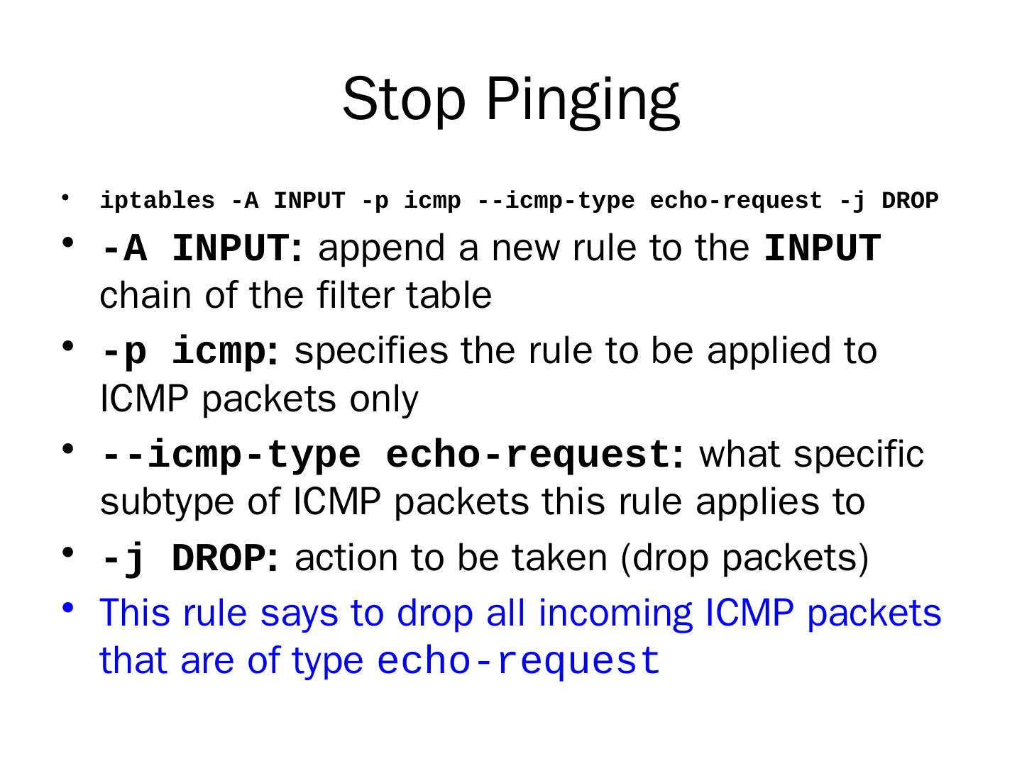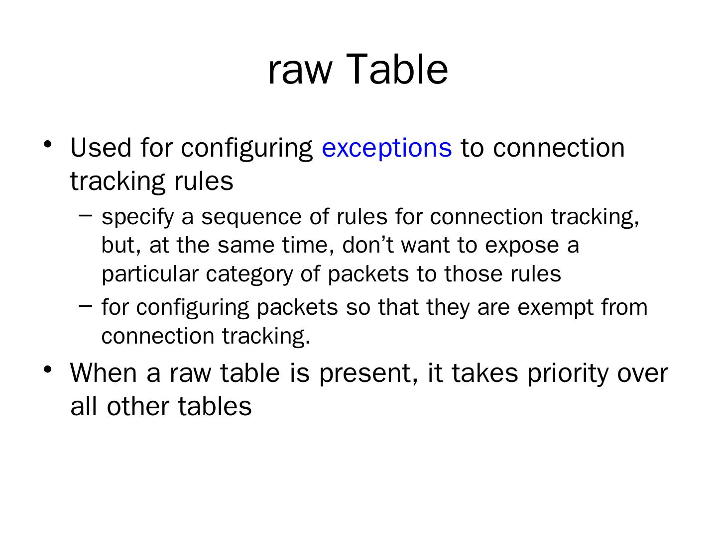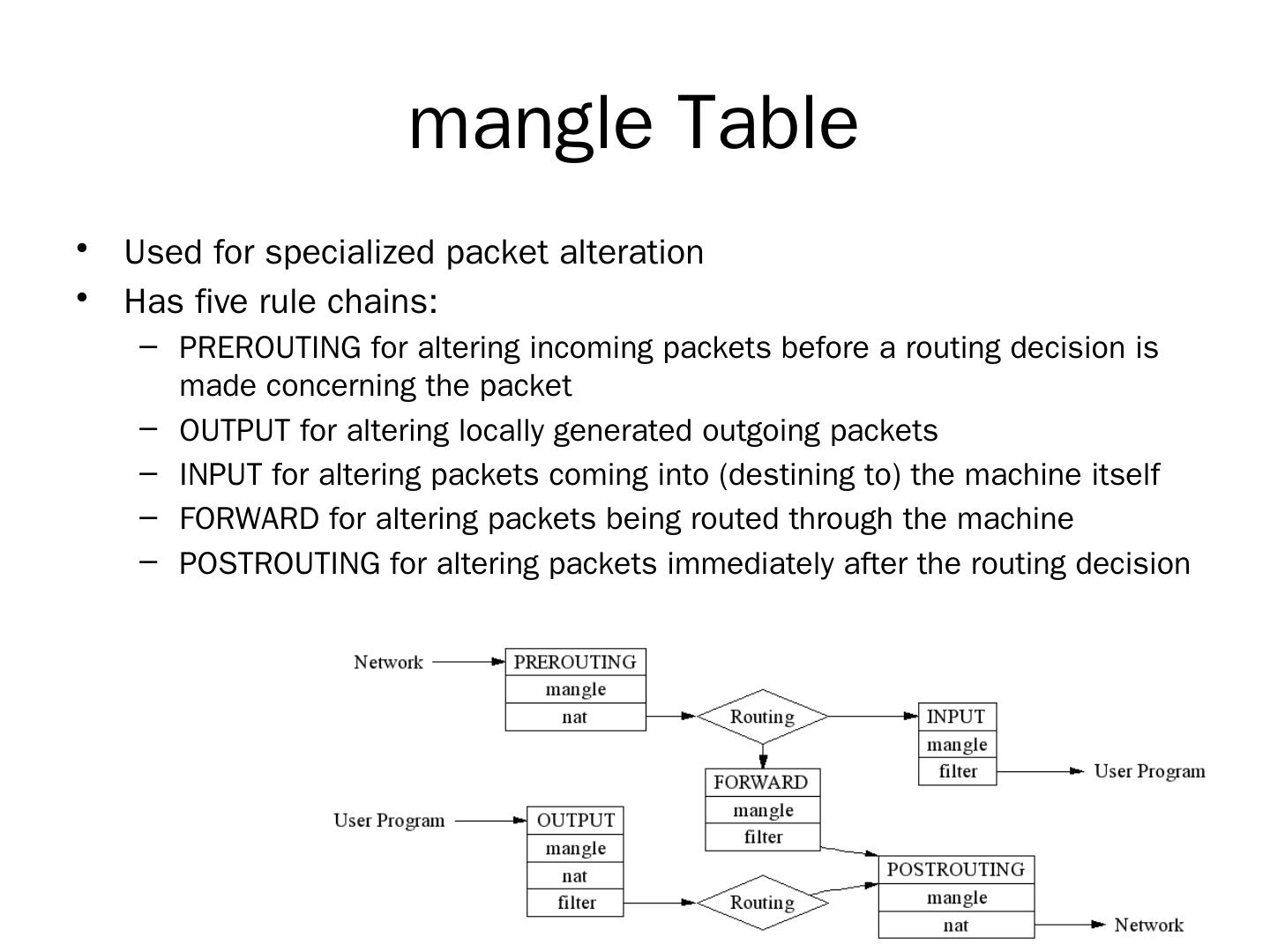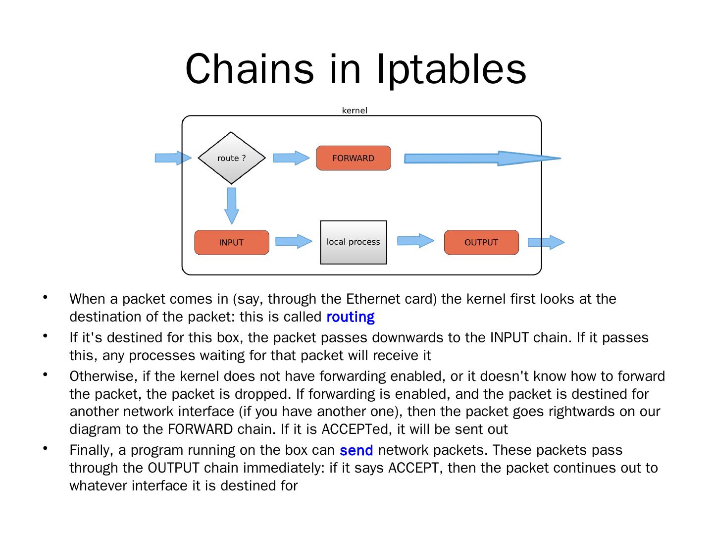 Transport layer (e.g., packet filtering with iptables): examine every IP packet, check its IP header and its higher-level protocol headers (in order to figure out, say, ...