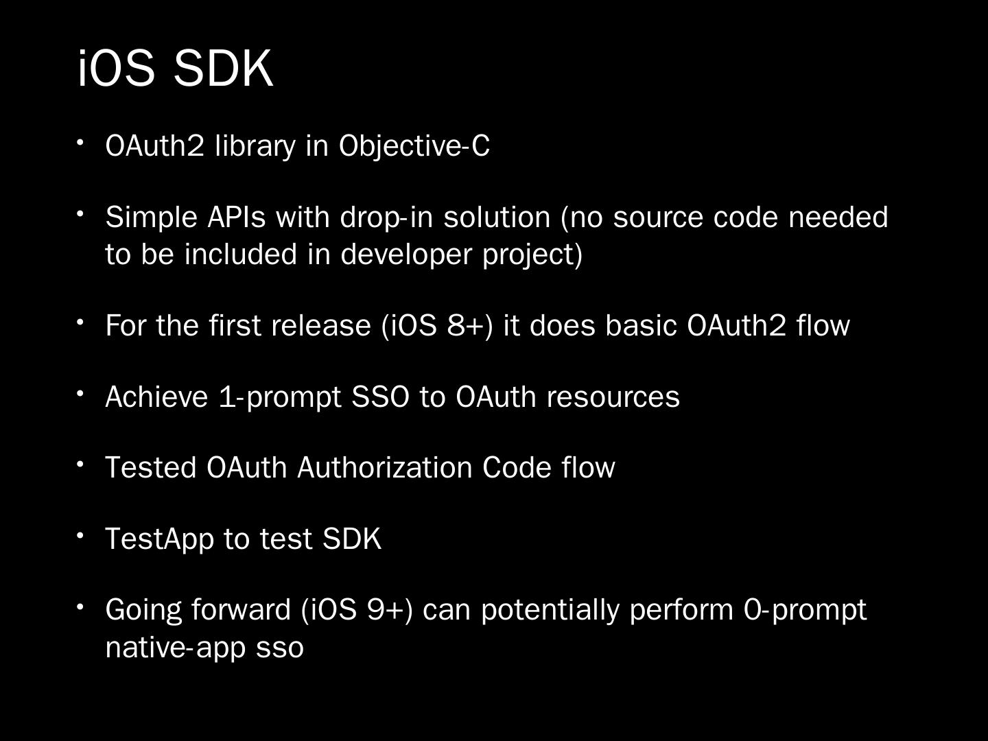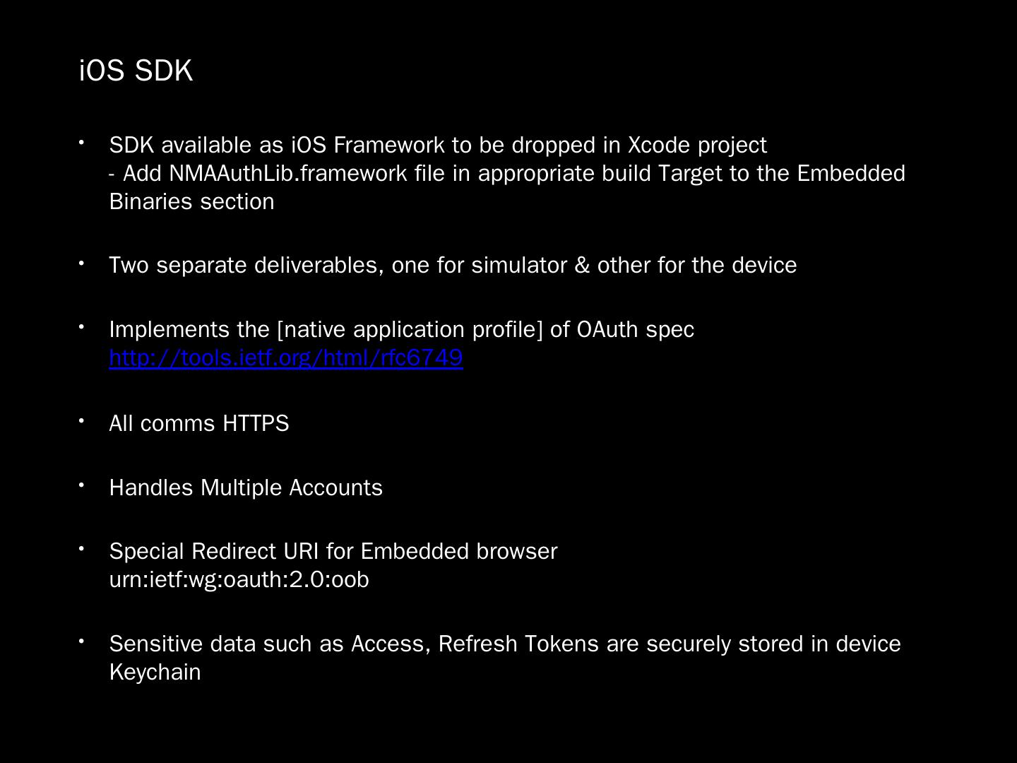 iOS SDK. v1.0 with NAM 4.2. iOS SDK. OAuth2 library in Objective-C; Simple APIs with drop-in solution (no source code needed to be included in developer ...