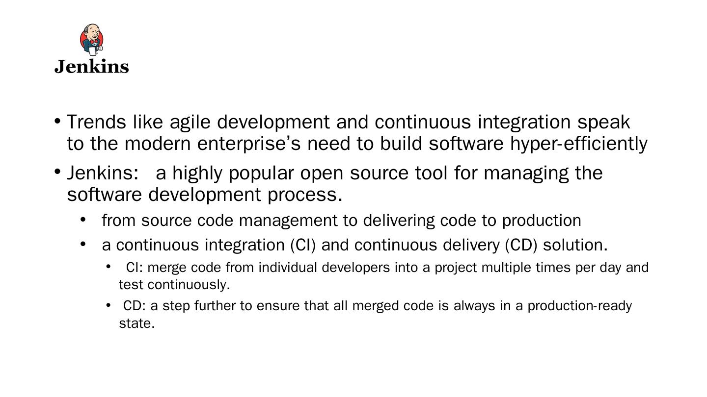 Trends like agile development and continuous integration speak to the modern enterprise's need to build software hyper-efficiently; Jenkins: a highly popular ...