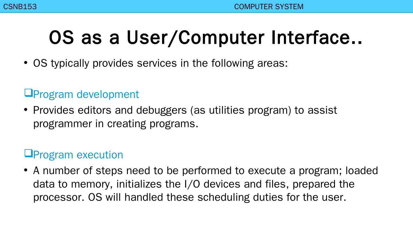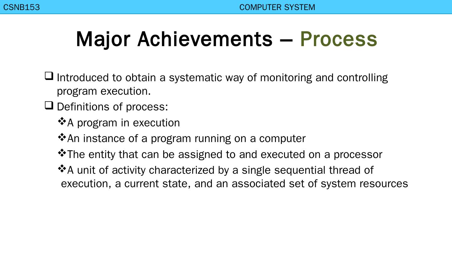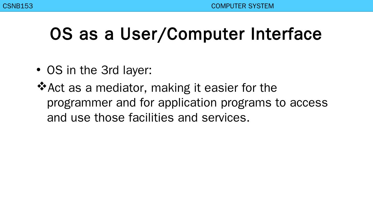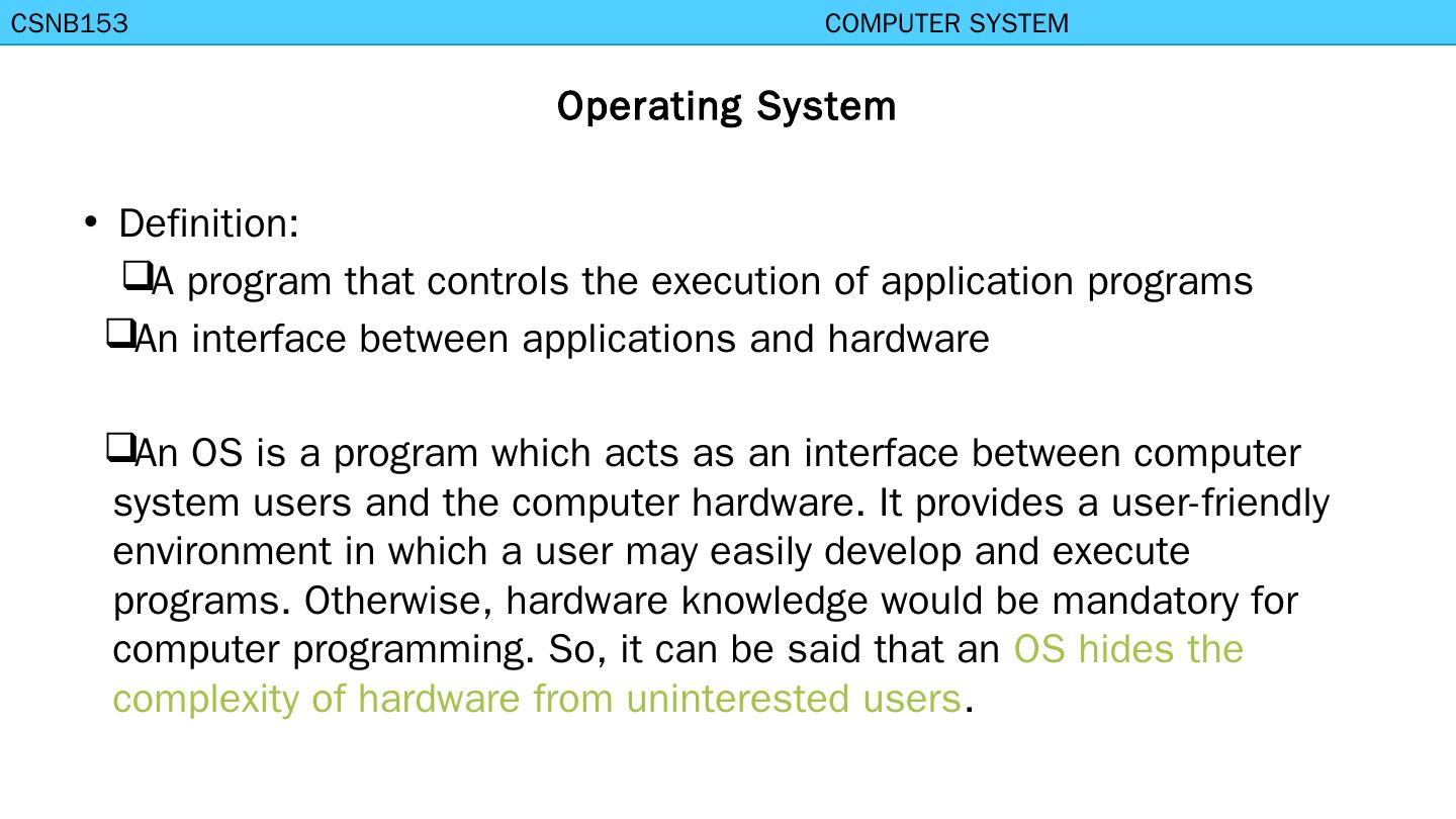 CSNB153 COMPUTER SYSTEM. COMPUTER ORGANIZATION. CMPD223. Operating System. Definition: A program that controls the execution of application ...
