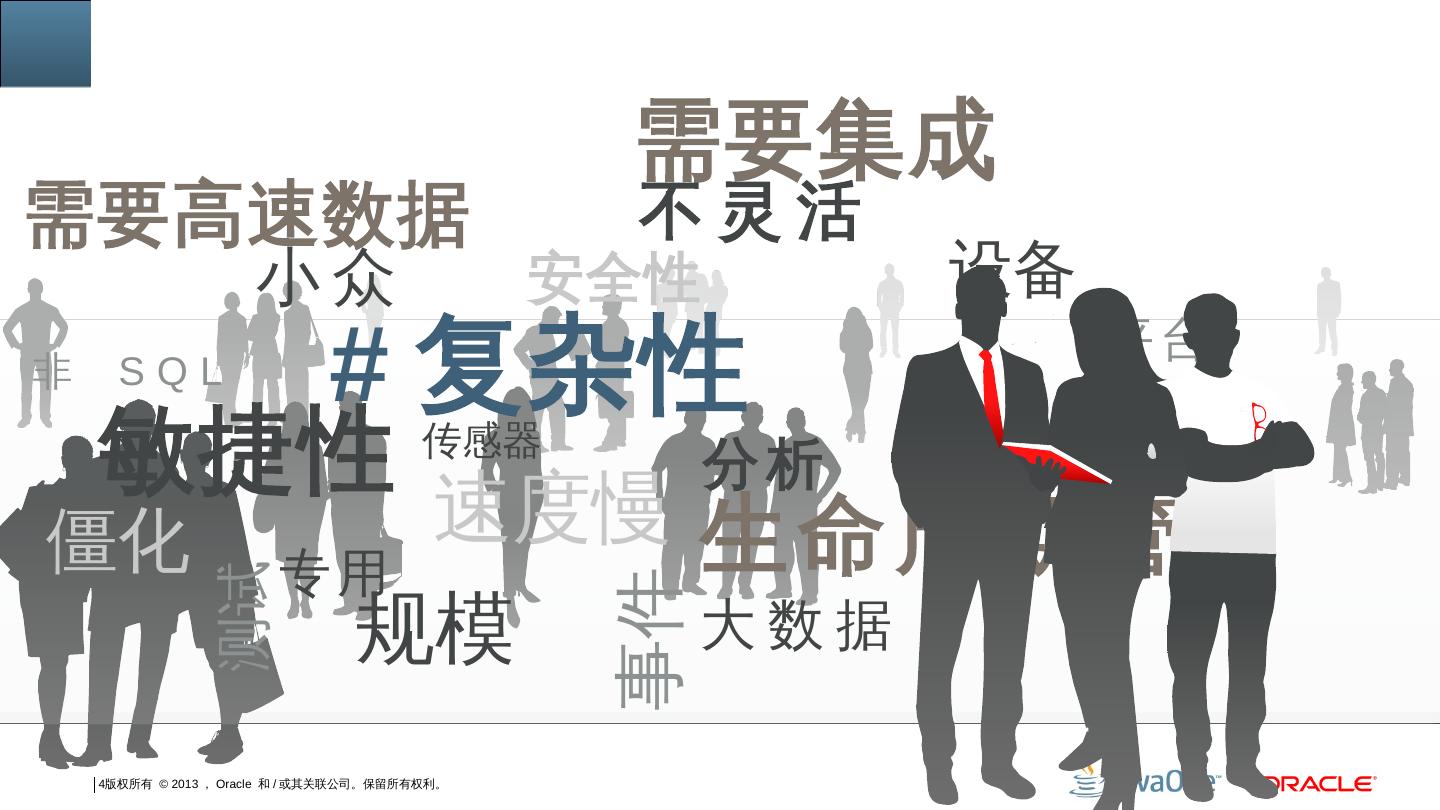4 . # 复杂性 生命周期管理 敏捷性 测试 传感器 大数据 专用 需要高速数据 小众 设备 事件 安全性 僵化 规模 分析 需要集成 平台 云 速度慢 不灵活 非 SQL
