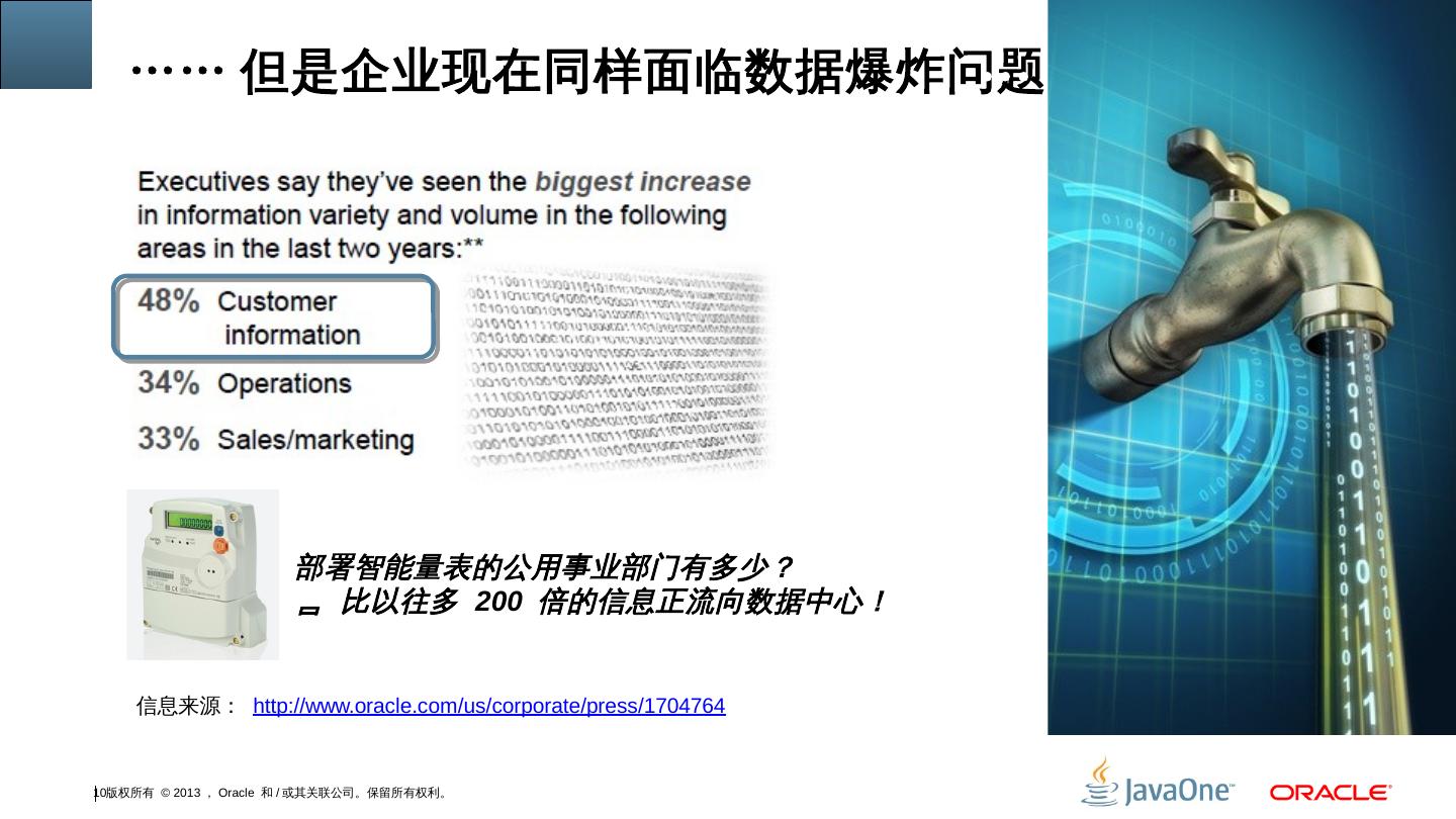 10 .……但是企业现在同样面临数据爆炸问题 ……但是企业现在同样面临数据爆炸问题 信息来源: http://www.oracle.com/us/corporate/press/1704764 部署智能量表的公用事业部门有多少 ? 比以往多 200 倍的信息正流向数据中心 !