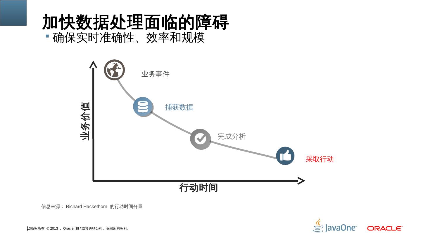 13 .加快数据处理面临的障碍 确保实时准确性、效率和规模 业务事件 行动时间 业务价值 捕获数据 完成分析 采取行动 信息来源:Richard Hackethorn 的行动时间分量