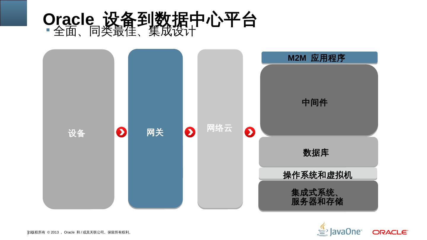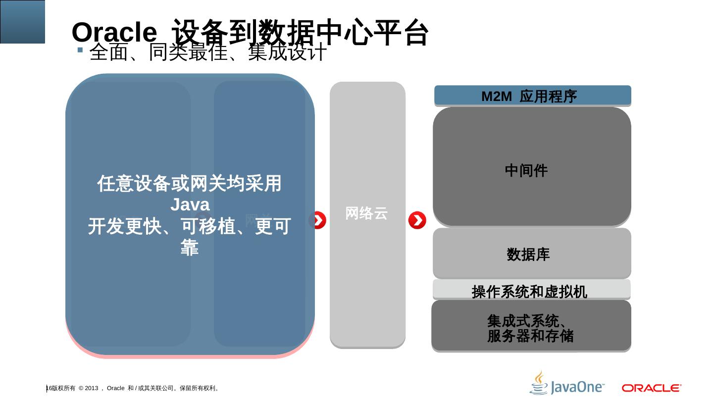 15 .Oracle 设备到数据中心平台 全面、同类最佳、集成设计 网关 网络 云 设备 网络 云 设备 网关 网络云 M2M 应用程序 中间件 操作系统和虚拟机 数据库 集成式系统、 服务器和存储
