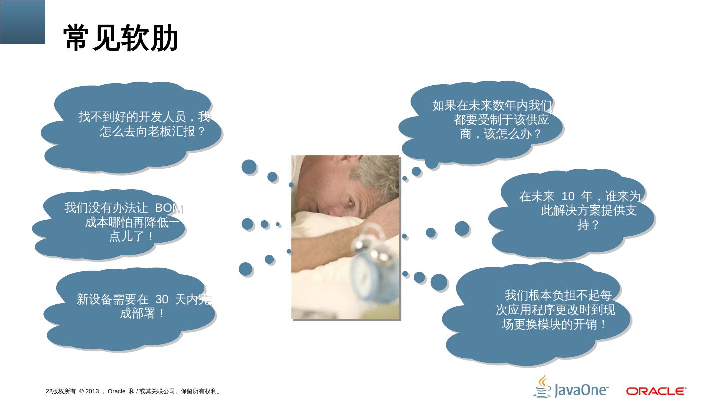 22 .如果在未来数年内我们都要受制于该供应商,该怎么办? 我们根本负担不起每次应用程序更改时到现场更换模块的开销! 新设备需要在 30 天内完成部署! 找不到好的开发人员,我怎么去向老板汇报 ? 我们没有办法让 BOM 成本哪怕再降低一点儿了! 在未来 10 年,谁来为此解决方案提供支持? 常见软肋