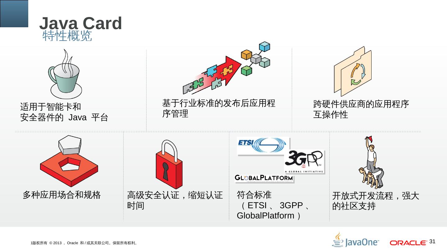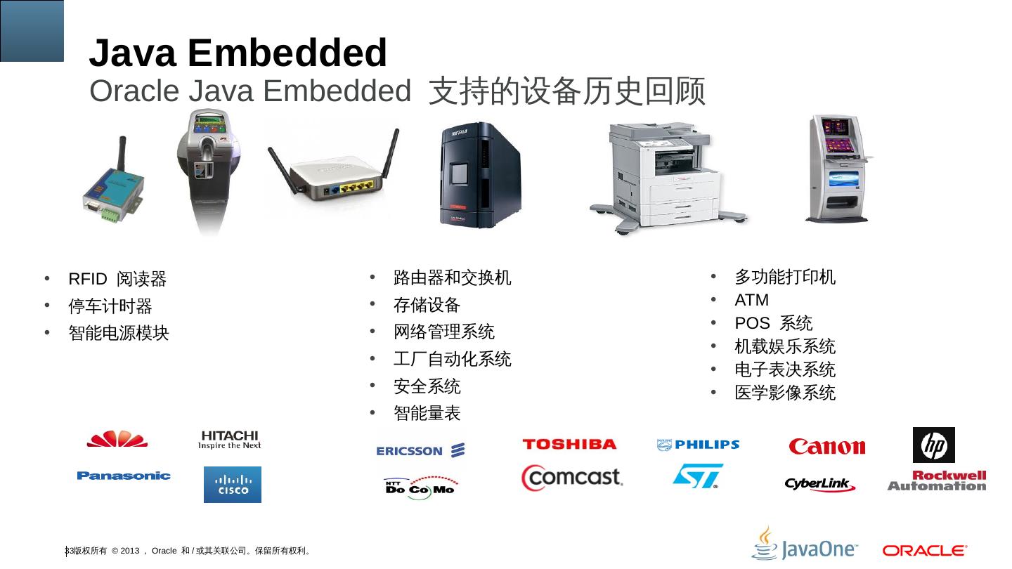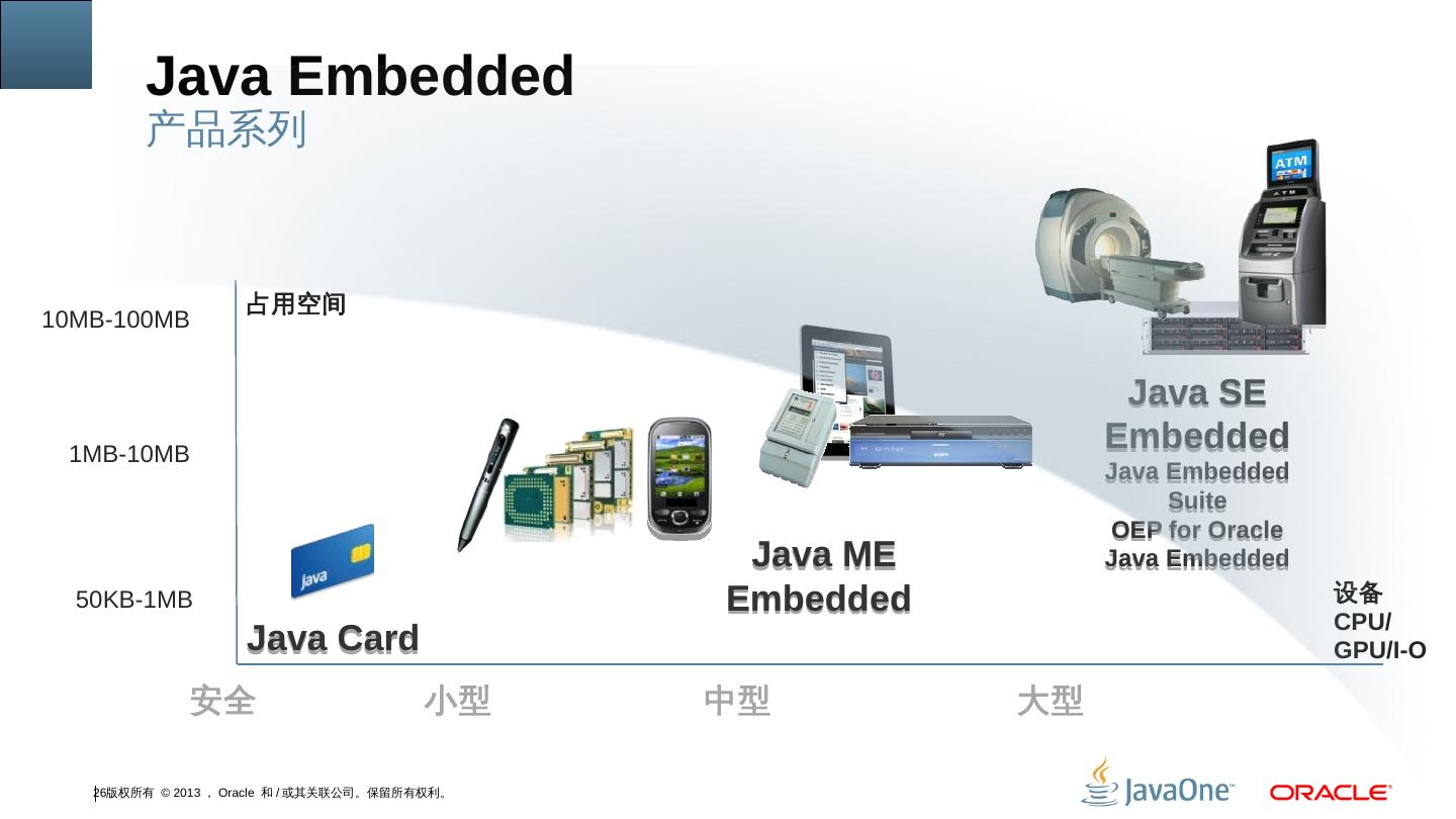 26 . Java ME Embedded Java SE Embedded Java Embedded Suite OEP for Oracle Java Embedded Java Card 安全 小型 中型 大型 50KB-1MB 1MB-10MB 10MB-100MB 设备 CPU/ GPU/I-O 占用空间 Java Embedded 产品系列