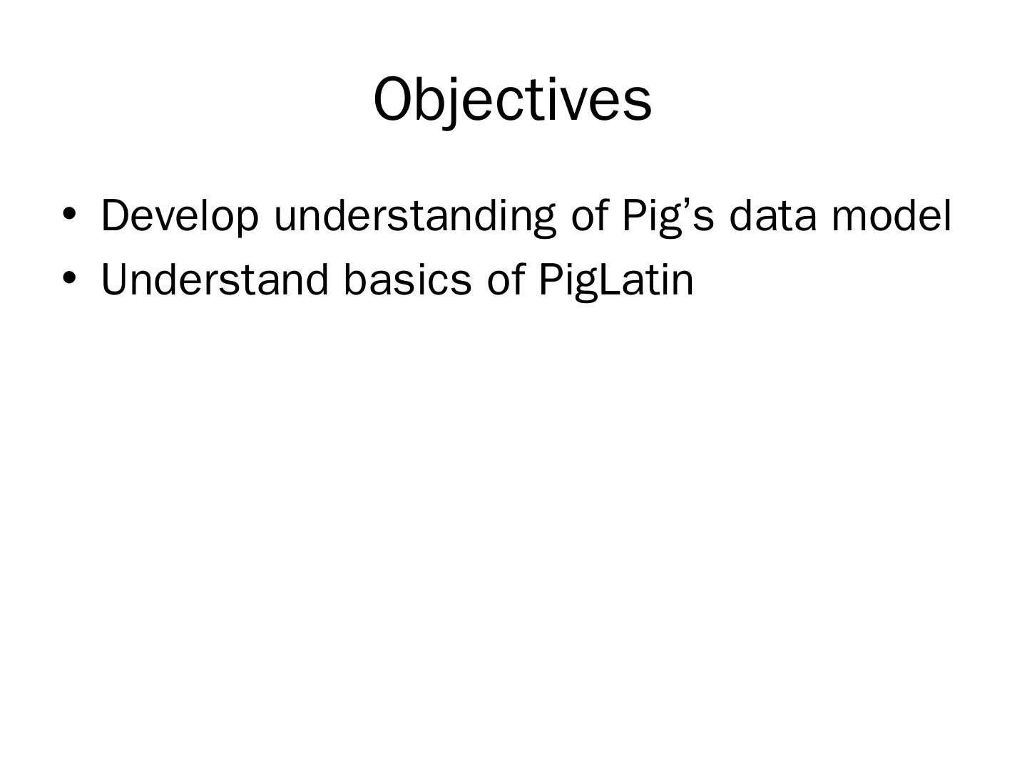 Apache Pig. CMSC 491. Hadoop-Based Distributed Computing. Spring 2016. Adam Shook. Objectives. Develop understanding of Pig's data model; Understand ...