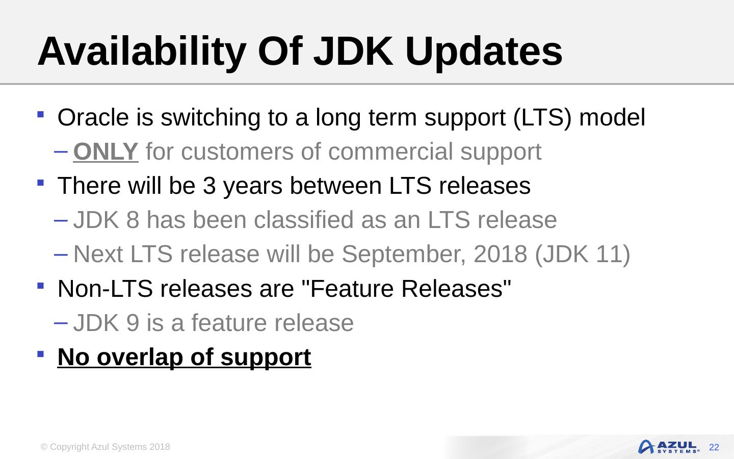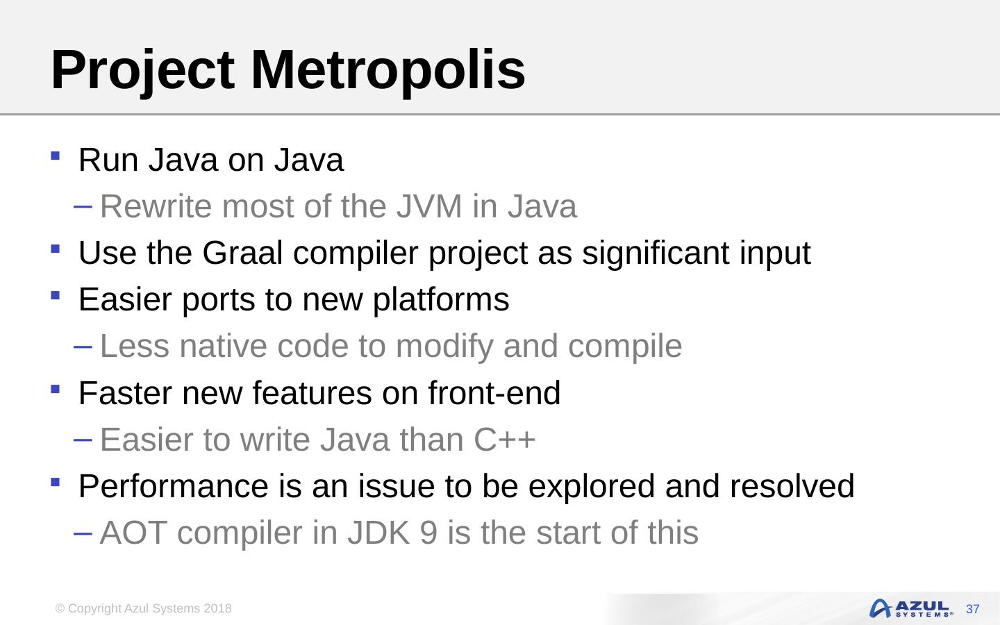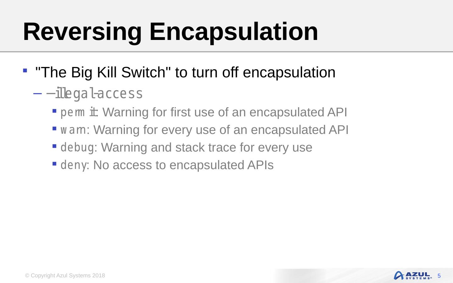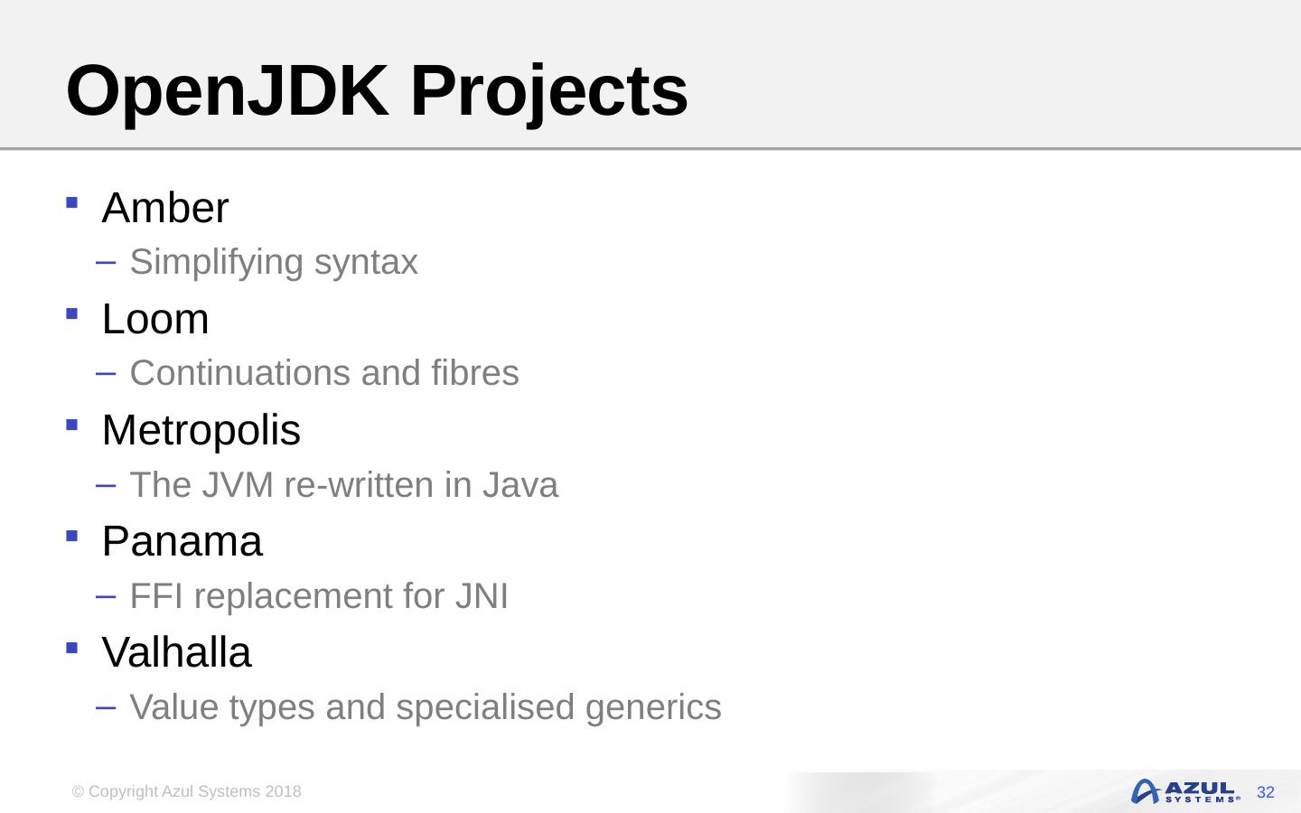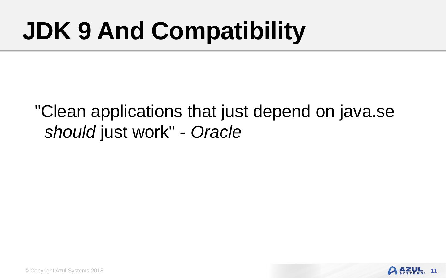 Java Platform Module System (JPMS). The core Java libraries are now a set of modules (JEP 220). 97 modules: 28 Java SE, 8 JavaFX, 59 JDK, 2 Oracle.