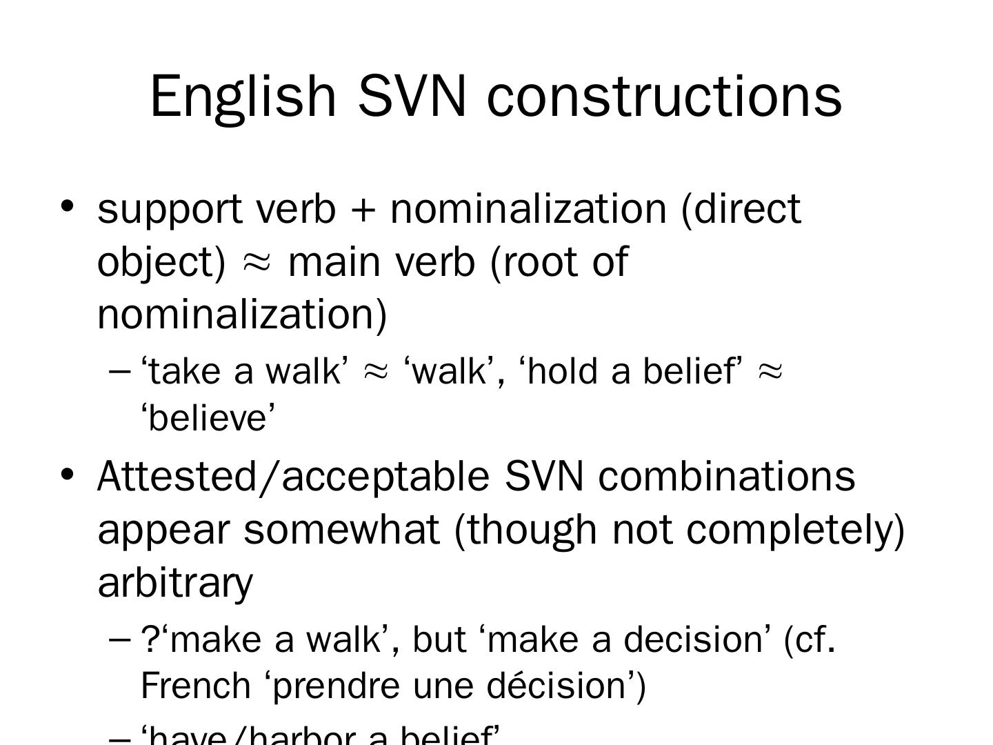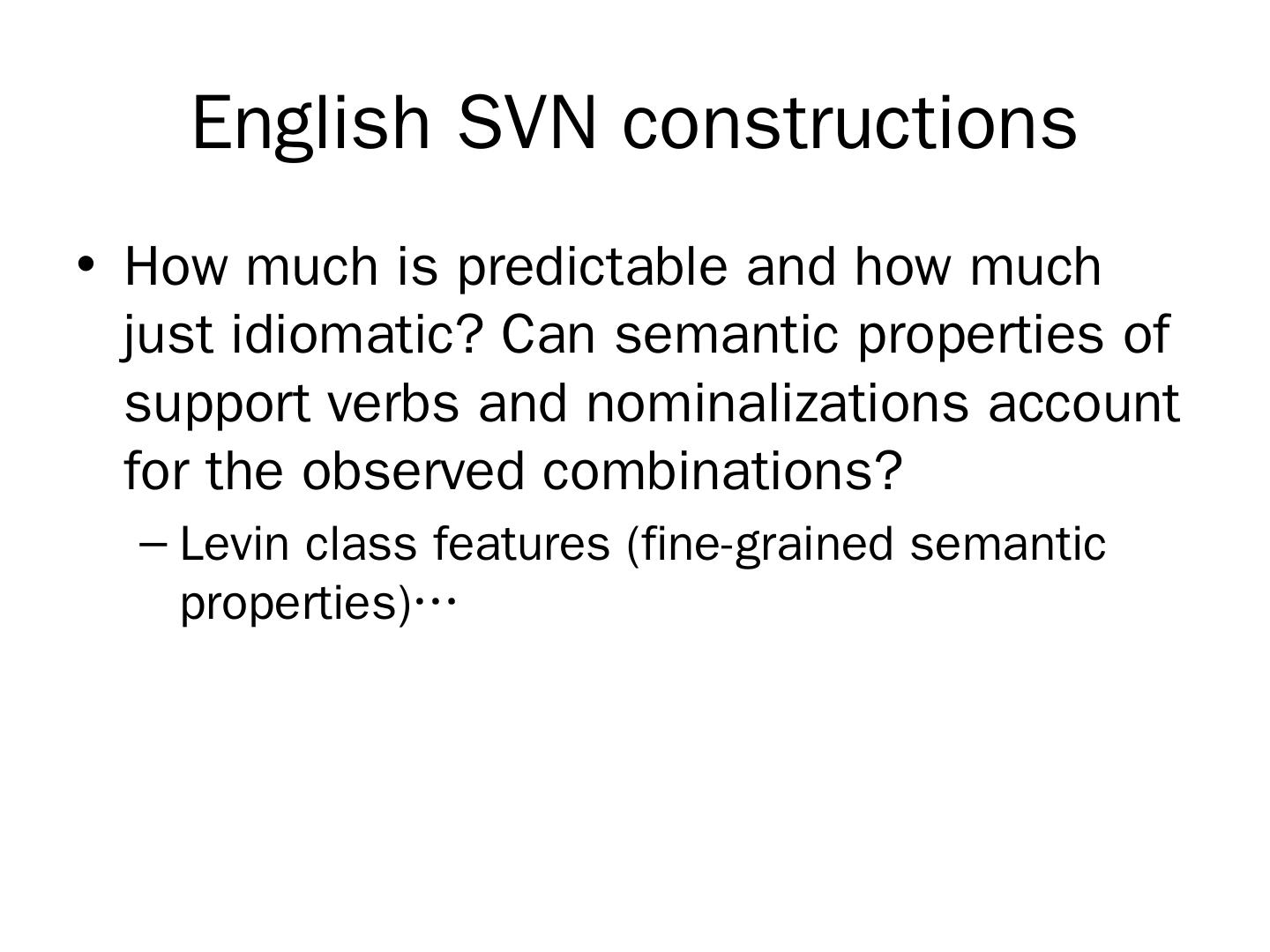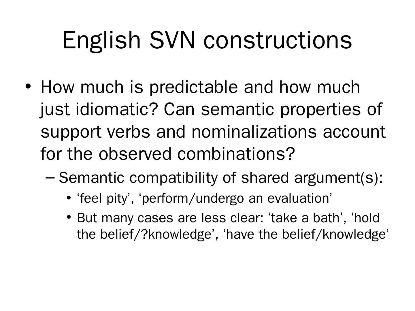 English SVN constructions. How much is predictable and how much just idiomatic? Can semantic properties of support verbs and nominalizations account for ...