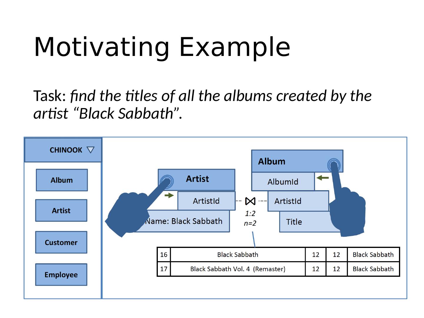 4 .Motivating Example Task: find the titles of all the albums created by the artist “Black Sabbath”.