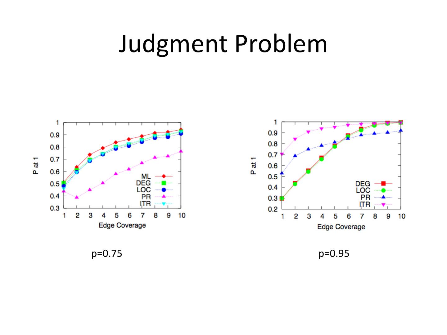 11 . Judgment Problem Local Strategy • Considers “neighbors of neighbors” • wins(i) = Σjwji losses(i) = Σjwij • s(i) = wins(i) – losses(i) + Σj:ci>cjwins(j) - Σj:ci<cjlosses(j) Reward Penalty