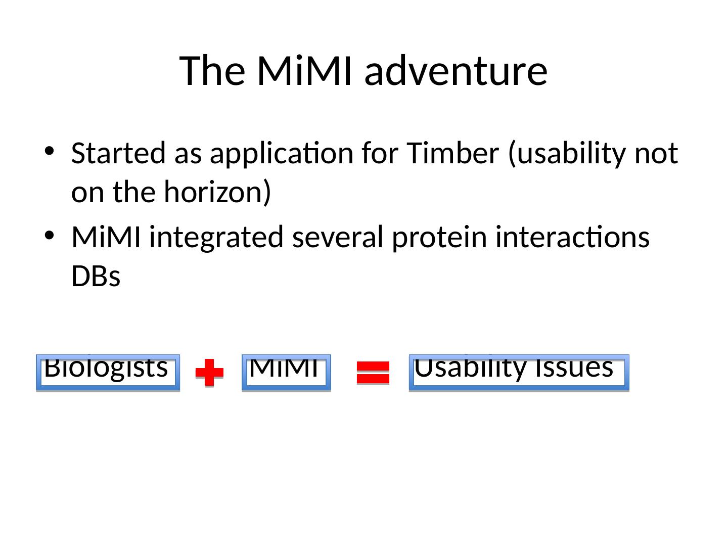 10 .The MiMI adventure Started as application for Timber (usability not on the horizon) MiMI integrated several protein interactions DBs
