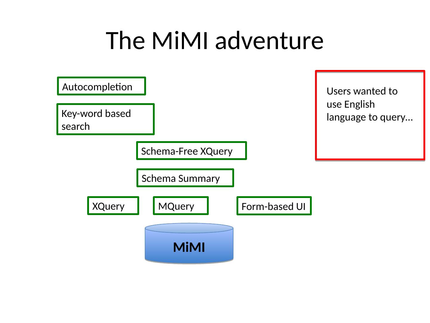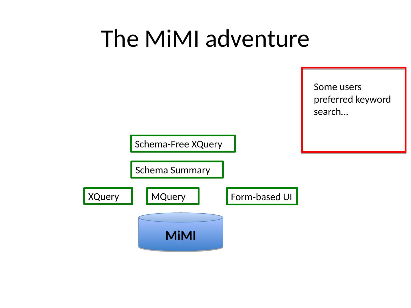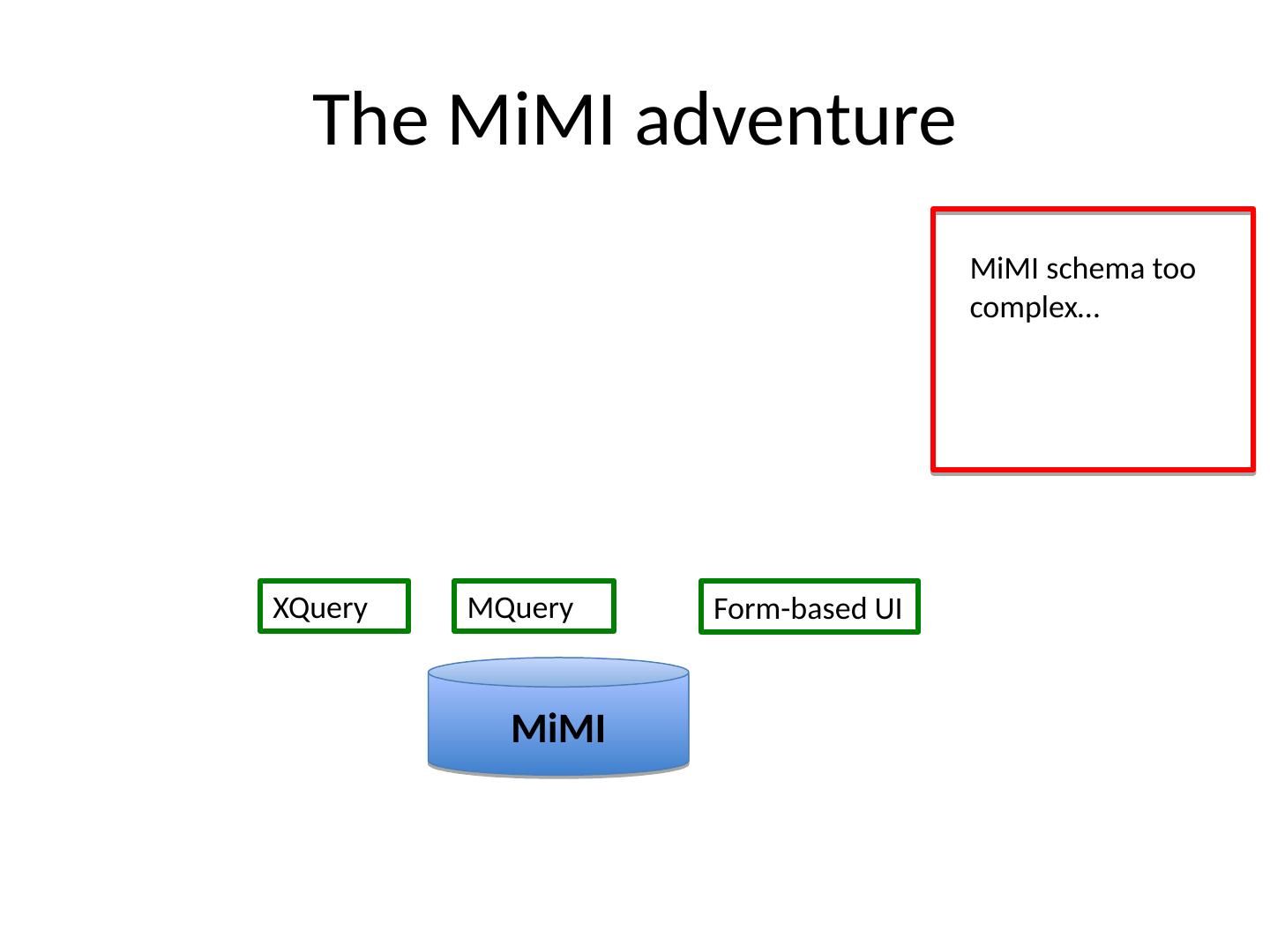 13 .The MiMI adventure MiMI XQuery Form-based UI MQuery MiMI schema too complex …