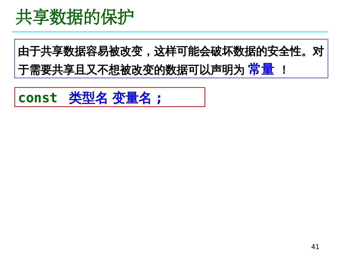 17 .17 引用 声明一个 引用 时 必须初始化 ,指向一个存在的对象 引用一旦初始化就不能改变,即不能再指向其它对象 若 引用作为形参 ,则调用函数时 才会被 初始化,此时形参是实参的一个别名,对形参的任何操作也会直接作用于实参 void swap_new(int &a, int &b) { int t = a; a = b; b = t; } int main() { int x=5, y=8; cout << "x=" << x << ", y=" << y << endl; swap_new(x, y); cout << "x=" << x << ", y=" << y << endl; } ex04_fun_14.cpp
