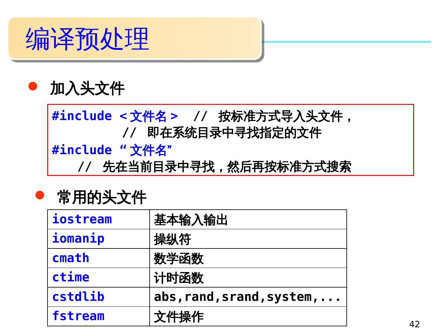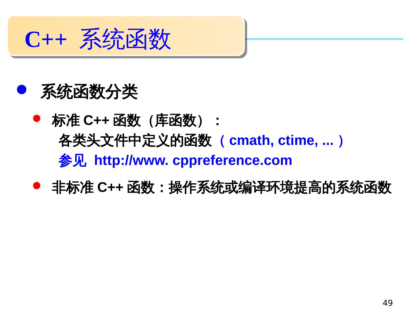 2 .2 主要内容 函数的 定义、 声明 与 调用 函数间的参数传递 函数嵌套与内联函数 形参 带缺省值的函数与函数重载 数据的作用域 预编译处理与多文件结构 C++ 系统函数