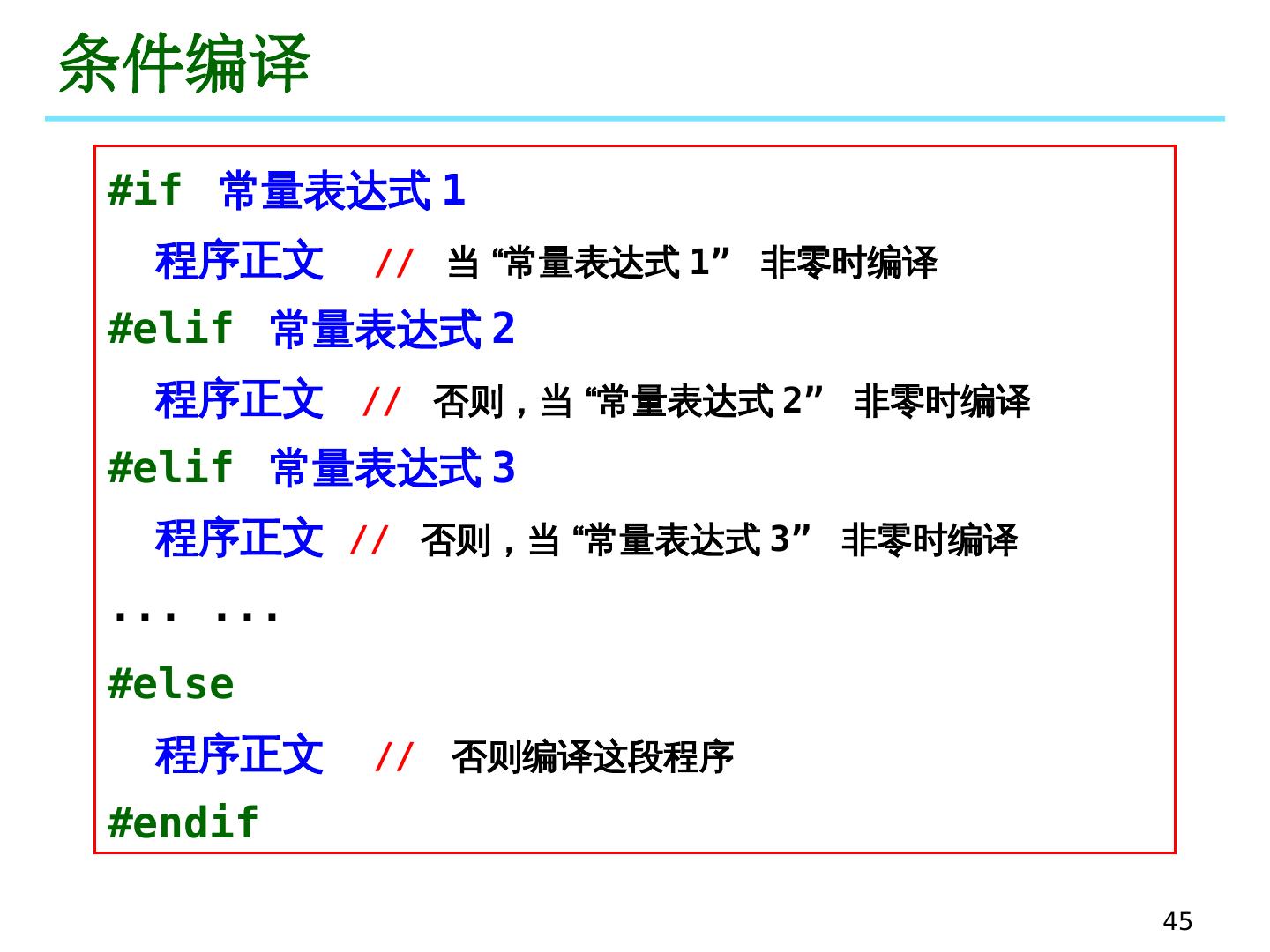 4 .4 形式参数表 形式参数表 ( 形参 ) 要指定数据类型 有多个形参时,用逗号隔开,每个形参需单独指定数据类型 如果函数 不带参数 ,则 形式参数 可以省略,但括号不能省 形参 只在 函数内部 有效 / 可见 类型标识符 变量 , 类型标识符 变量 , . . . . . . 函数返回值 int my_max(int x, int y) // OK int my_max(int x, y) // ERROR 通过 return 语句给出,如 return x 若没有返回值,可以不写,也可以写不带表达式的 return 形式参数列表