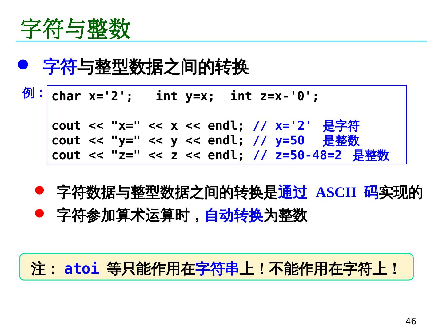 5 .5 指针运算 指针运算符: * 指针变量名 // 提取指针变量所指向的对象的值 例: int x; int * px; // 声明指针变量,星号后面可以有空格! px=&x; *px = 3; // 等价于 x = 3 ,星号后面不能有空格! ex06_pointer_01.cpp * 在使用指针时,我们通常关心的是指针指向的元素! 初始化:声明指针变量时,可以赋初值 例: int x = 3; int * px = &x; // 指针的值只能是某个变量的地址