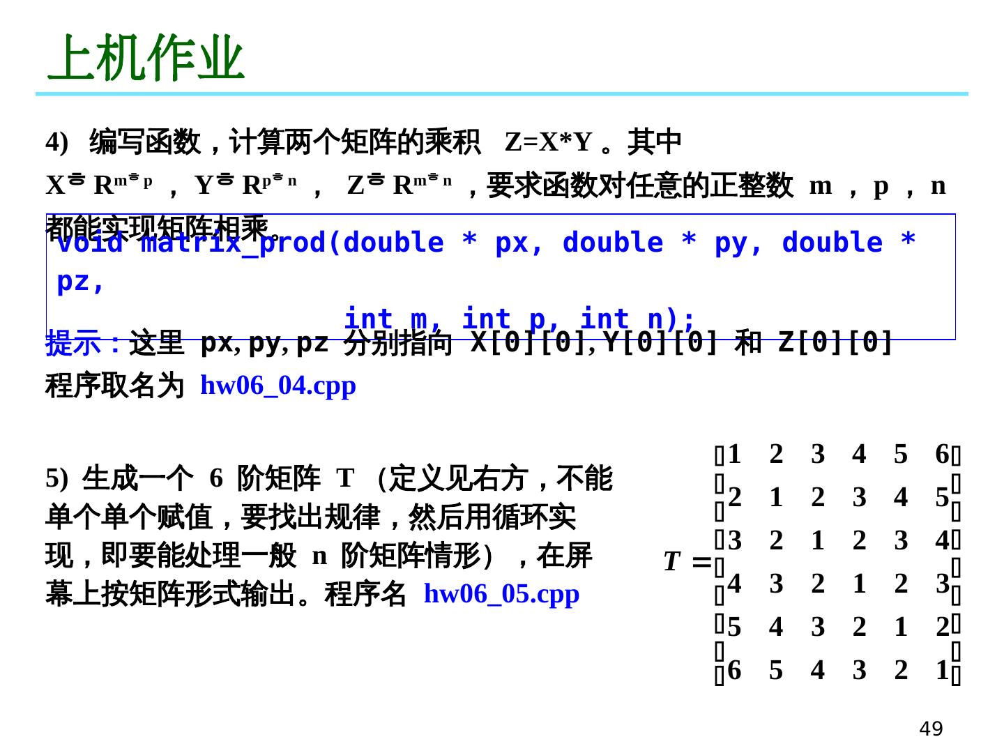 23 .23 指针作为函数参数 以地址方式传递数据。 形参是指针时,实参可以是指针或地址。 指针作为函数参数 当函数间需要传递大量数据时,开销会很大。此时,如果数据是 连续存放 的,则可以只传递数据的 首地址 ,这样就可以减小开销,提高执行效率! void split (double x, int * n, double * f ) double x, x2; int x1; split (x, &x1, &x2 ) ex06_pointer_fun01.cpp