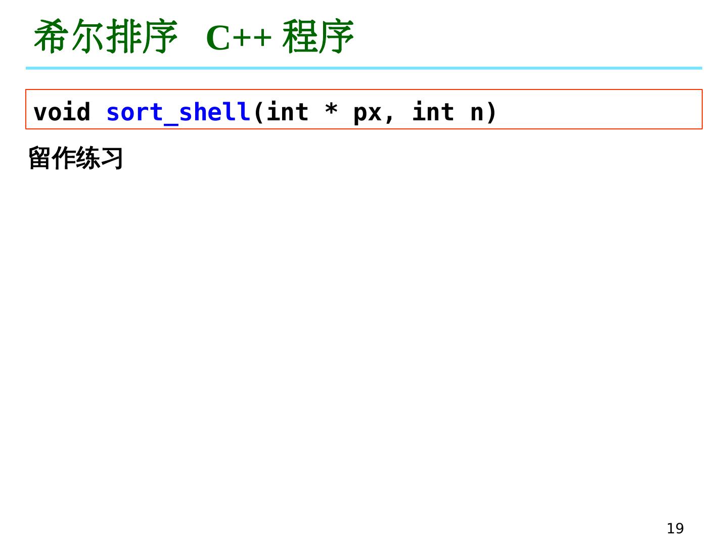19 .19 希尔排序 C++ 程序 void sort_ shell ( int * px , int n) 留作练习