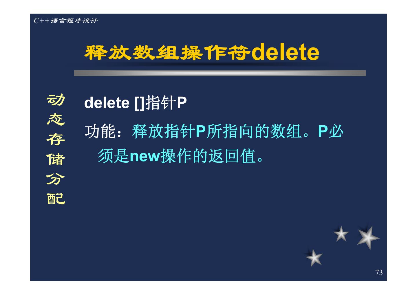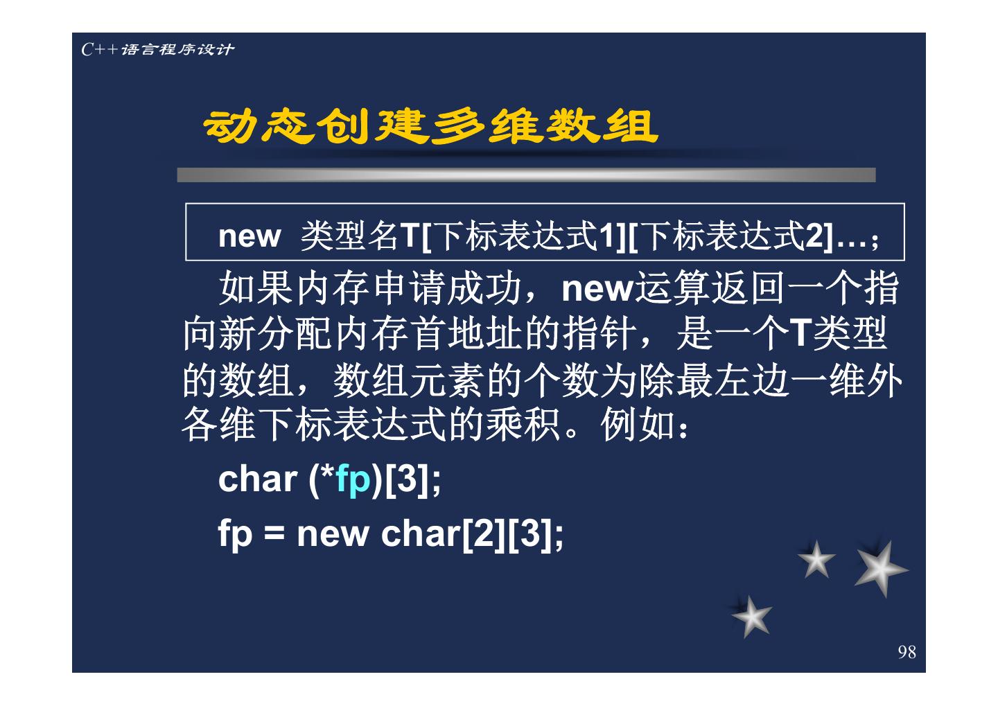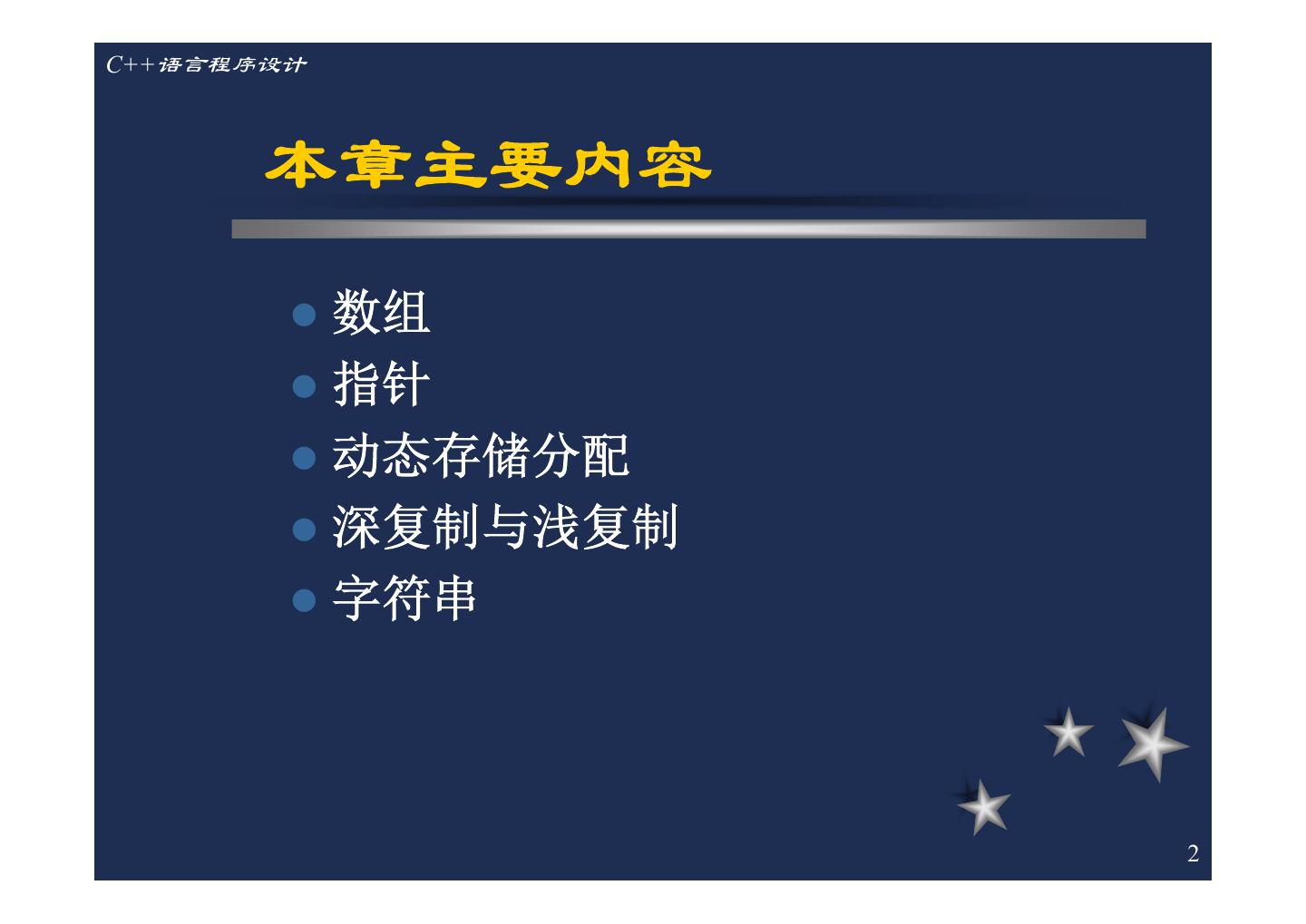 2 .C++语言程序设计 本章主要内容 数组 指针 动态存储分配 深复制与浅复制 字符串 2