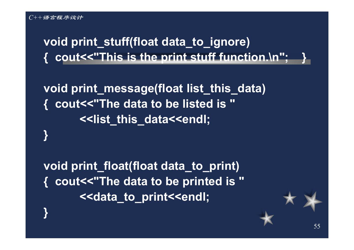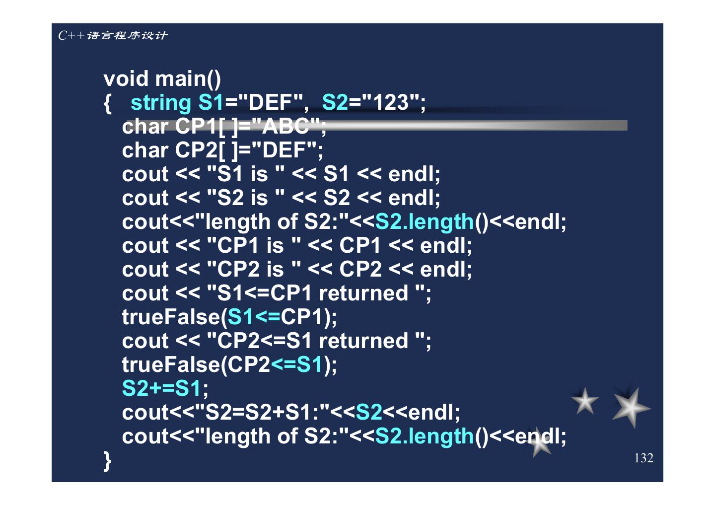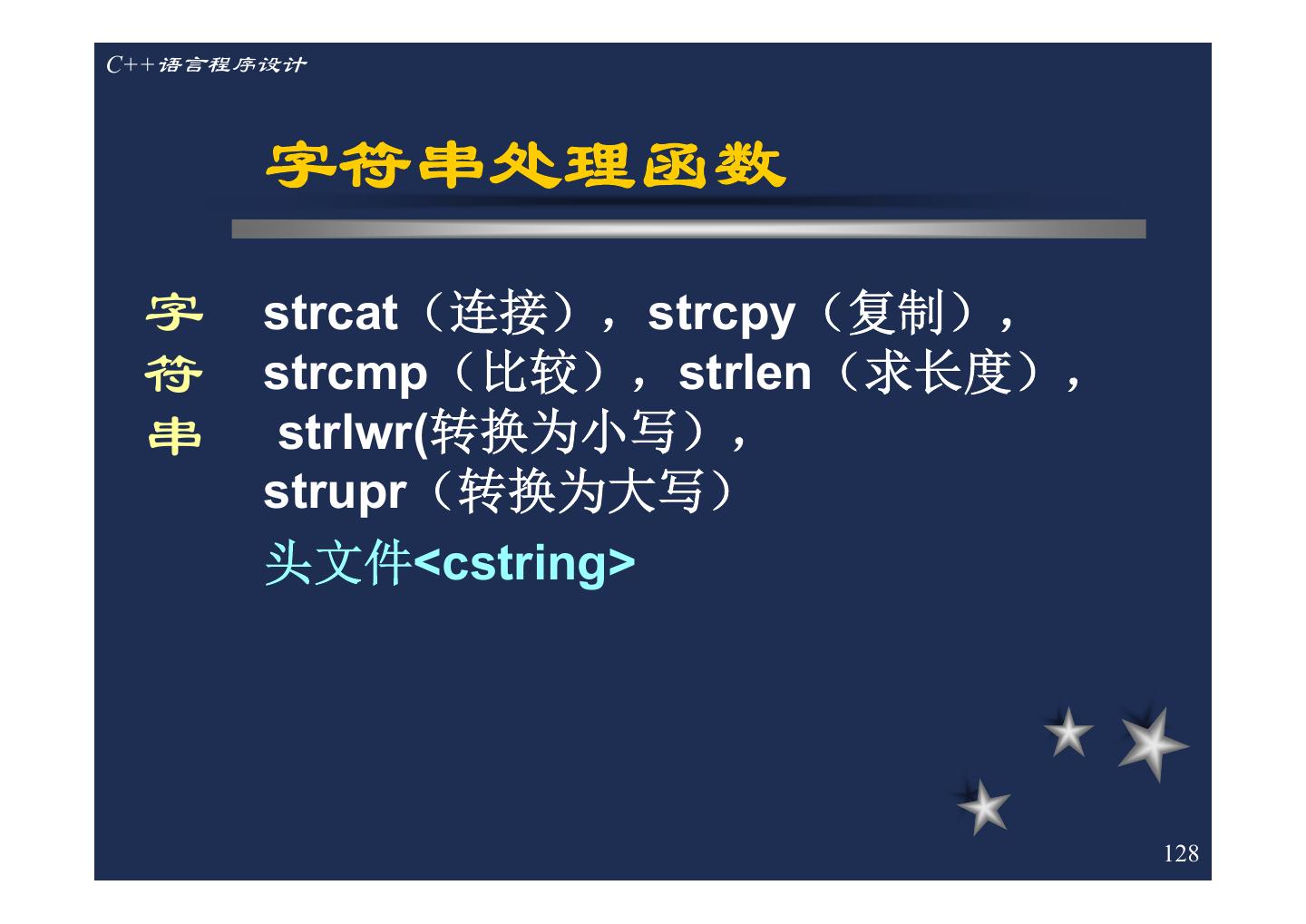 13 .C++语言程序设计 数 数组作为函数参数 数组元素作实参,与单个变量一样。 组 数组名作参数,形、实参数都应是数 组名,类型要一样,传送的是数组首 地址。对形参数组的改变会直接影响 到实参数组。 13