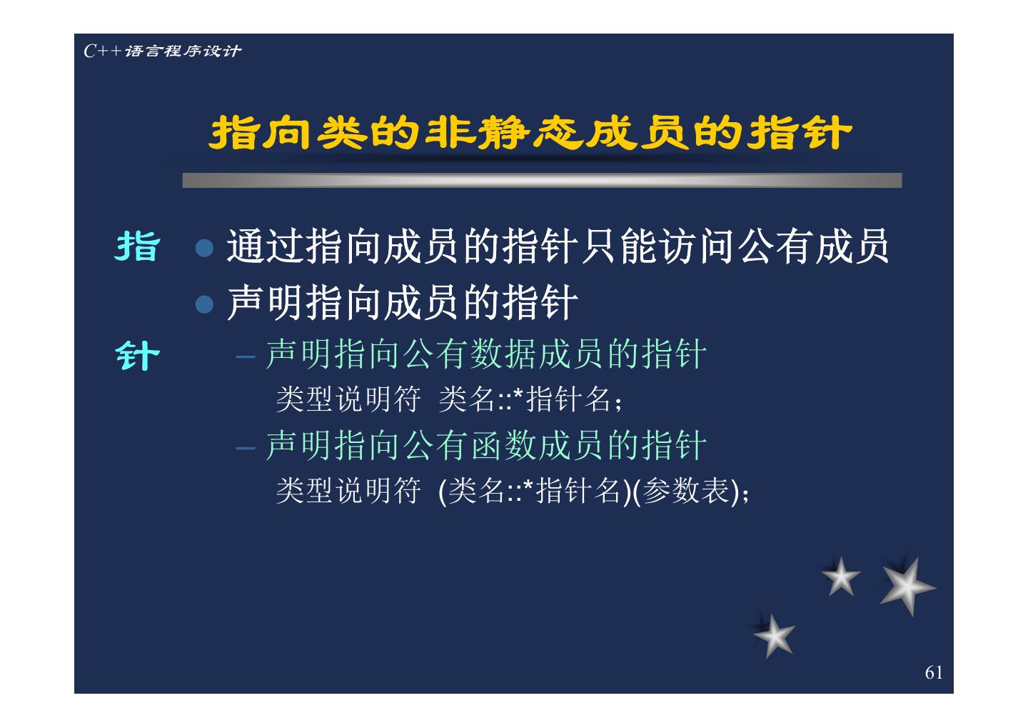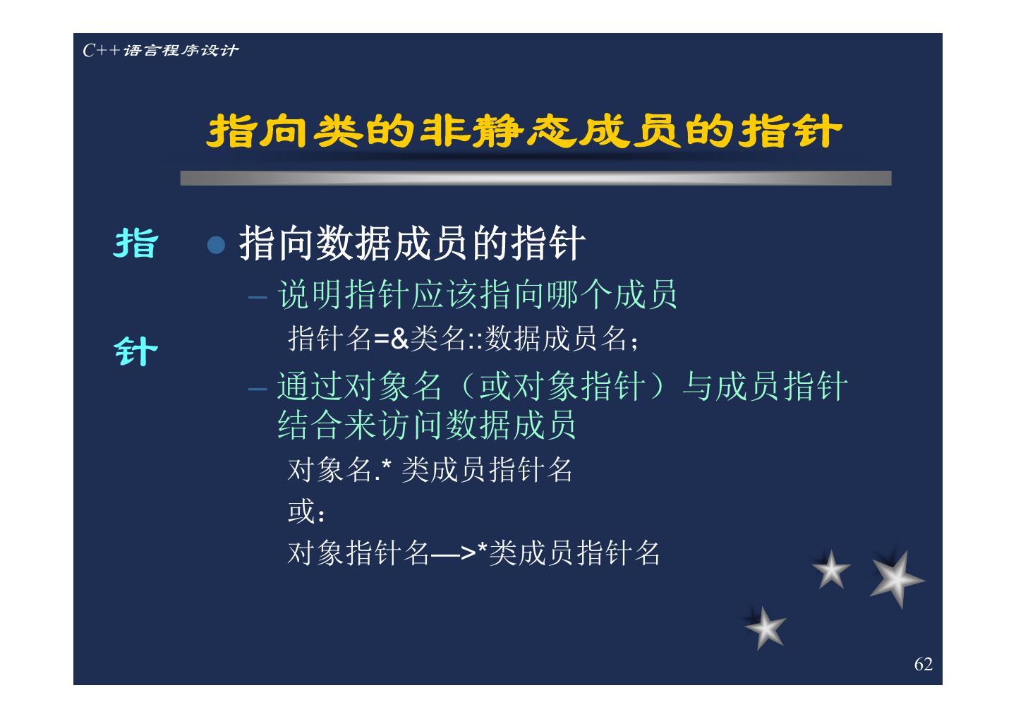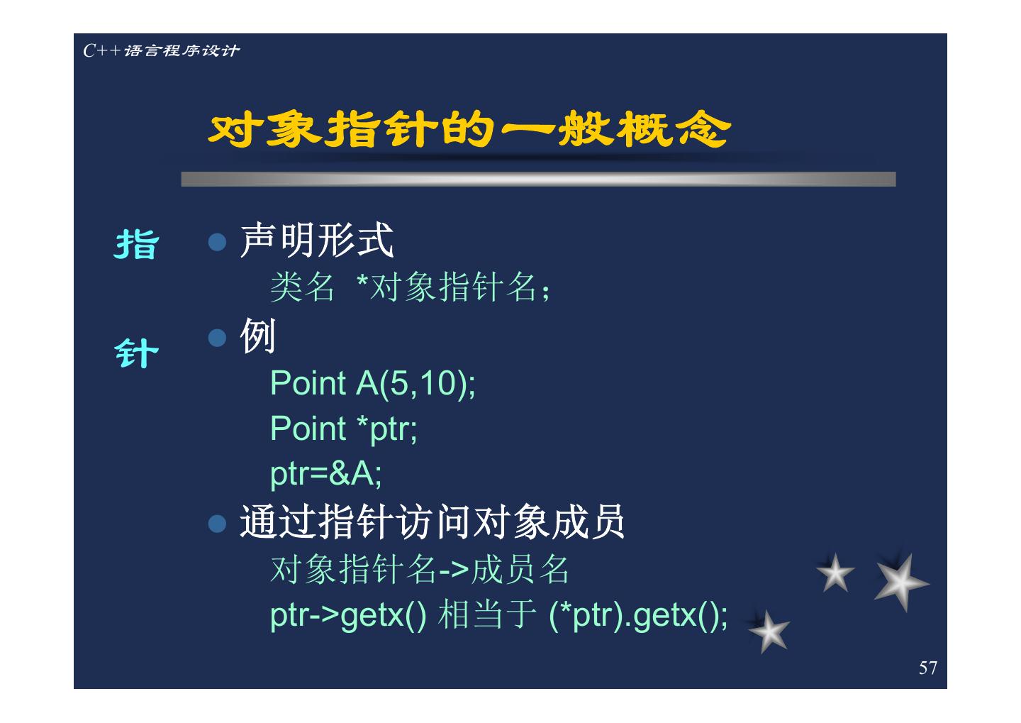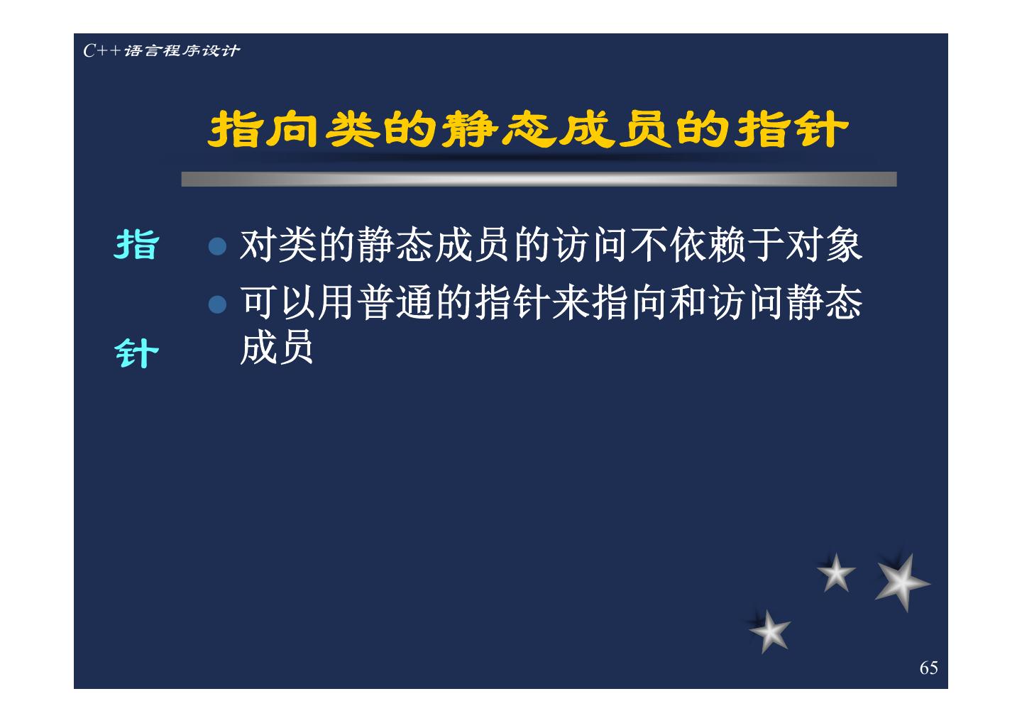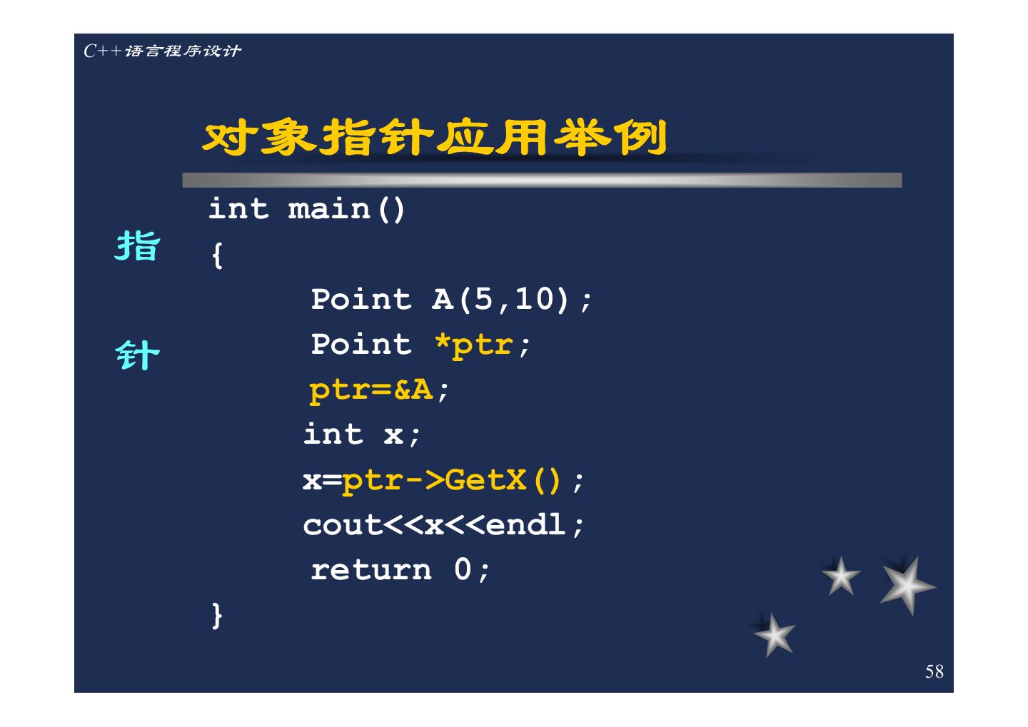 28 .C++语言程序设计 指 指针变量的初始化 语法形式 存储类型 数据类型 *指针名=初始地址; 针 例: int *pa=&a; 28