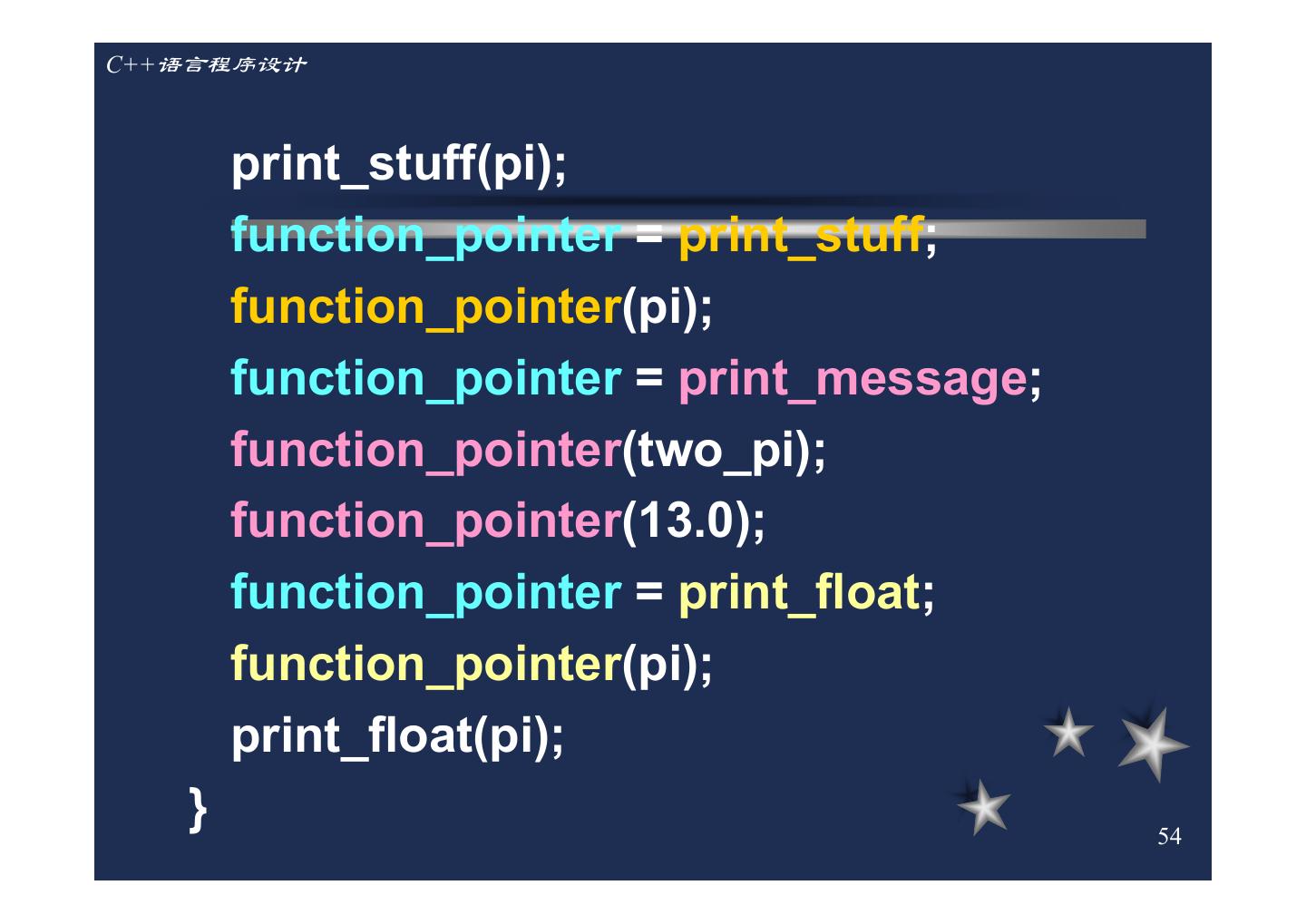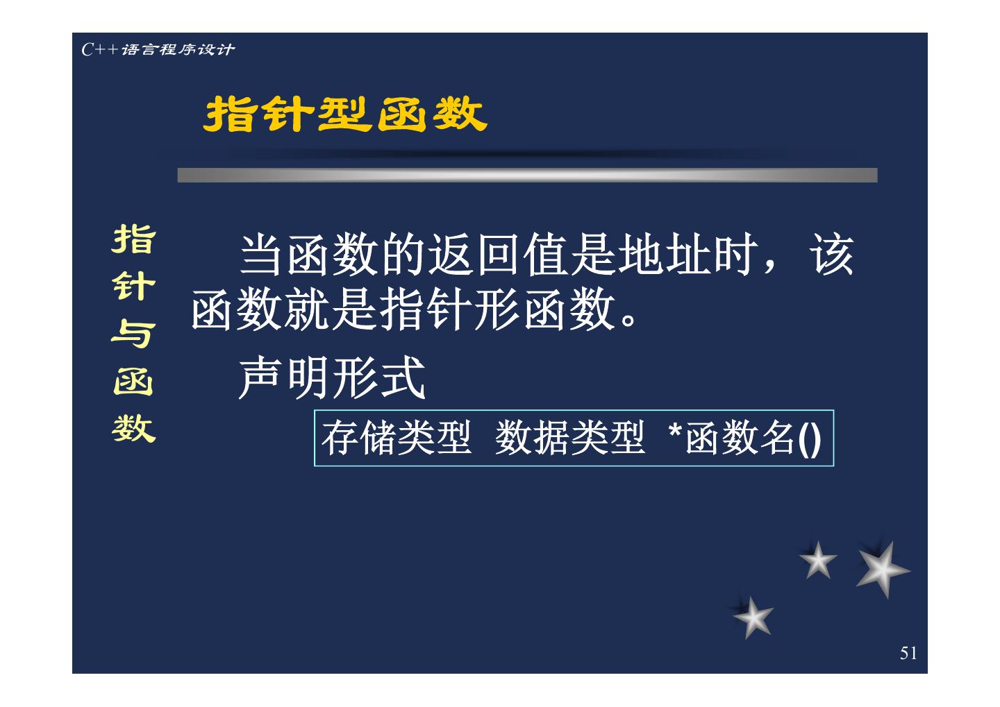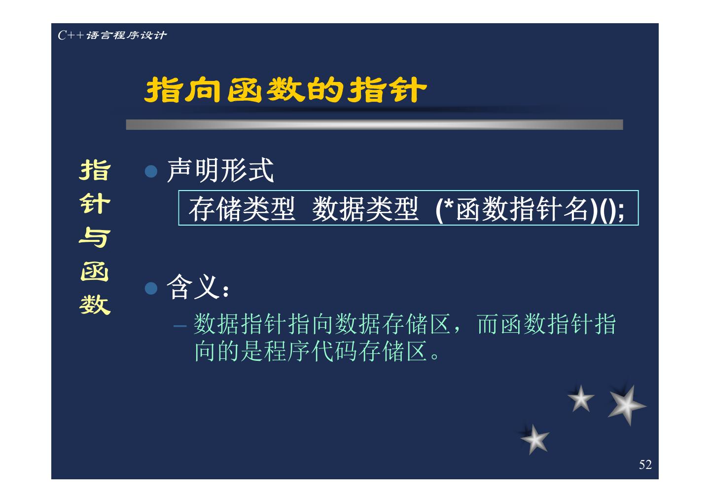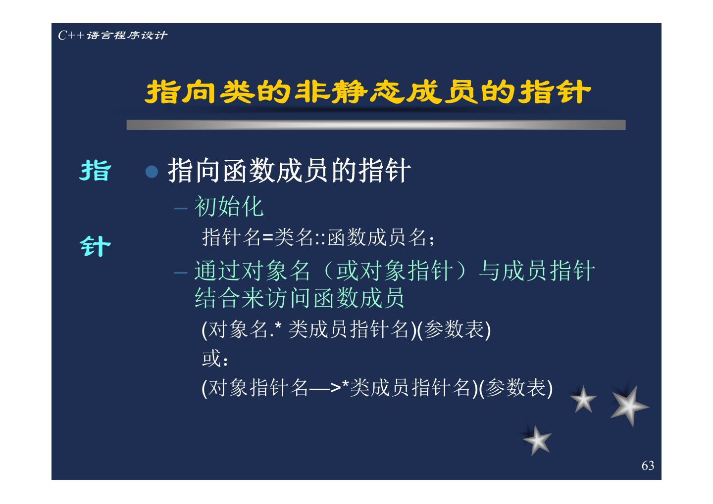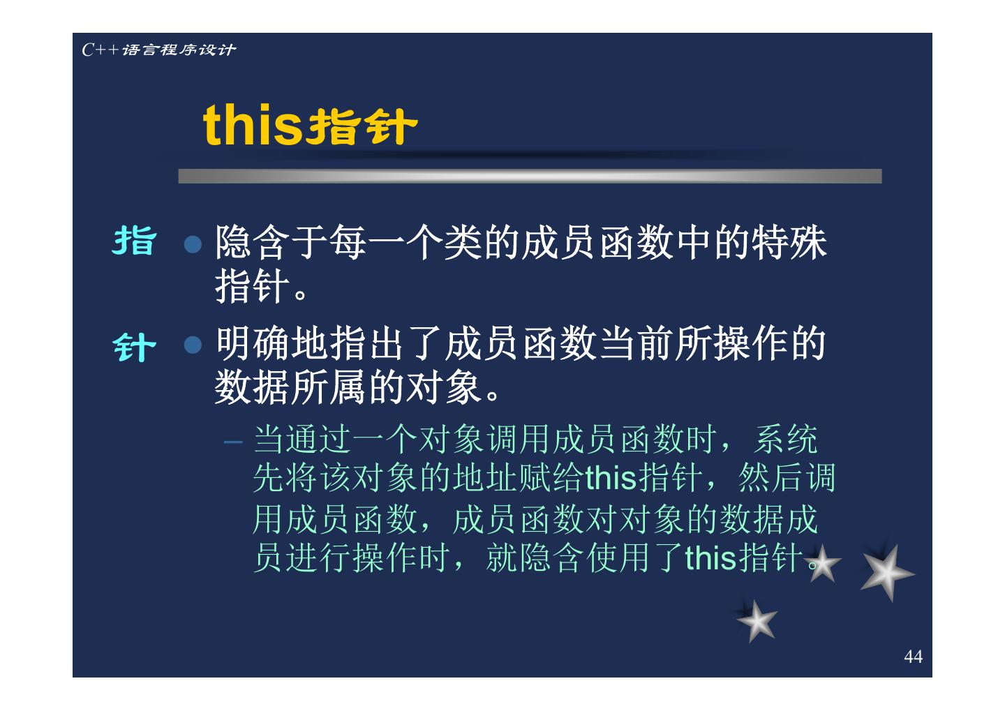 28 .C++语言程序设计 指 指针变量的初始化 语法形式 存储类型 数据类型 *指针名=初始地址; 针 例: int *pa=&a; 28