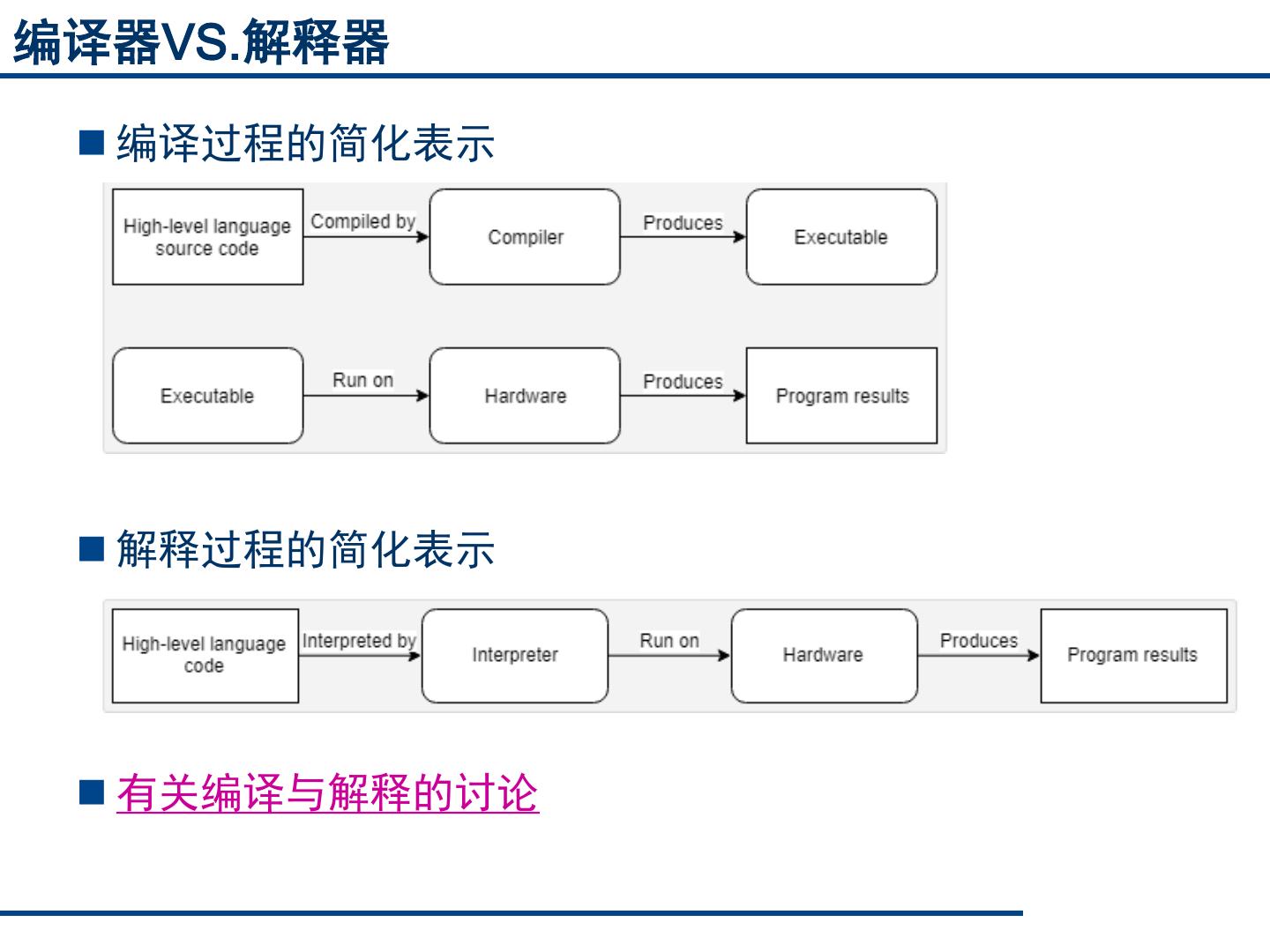 10 .编译器VS.解释器 编译过程的简化表示 解释过程的简化表示 有关编译与解释的讨论
