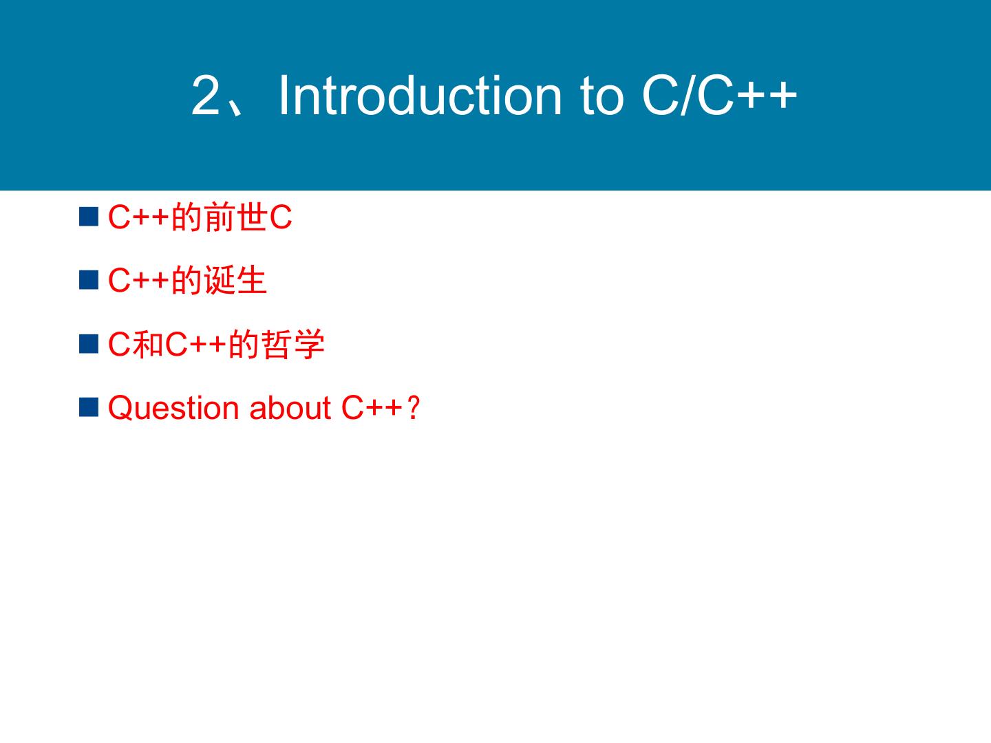 12 . 2、Introduction to C/C++ C++的前世C C++的诞生 C和C++的哲学 Question about C++?