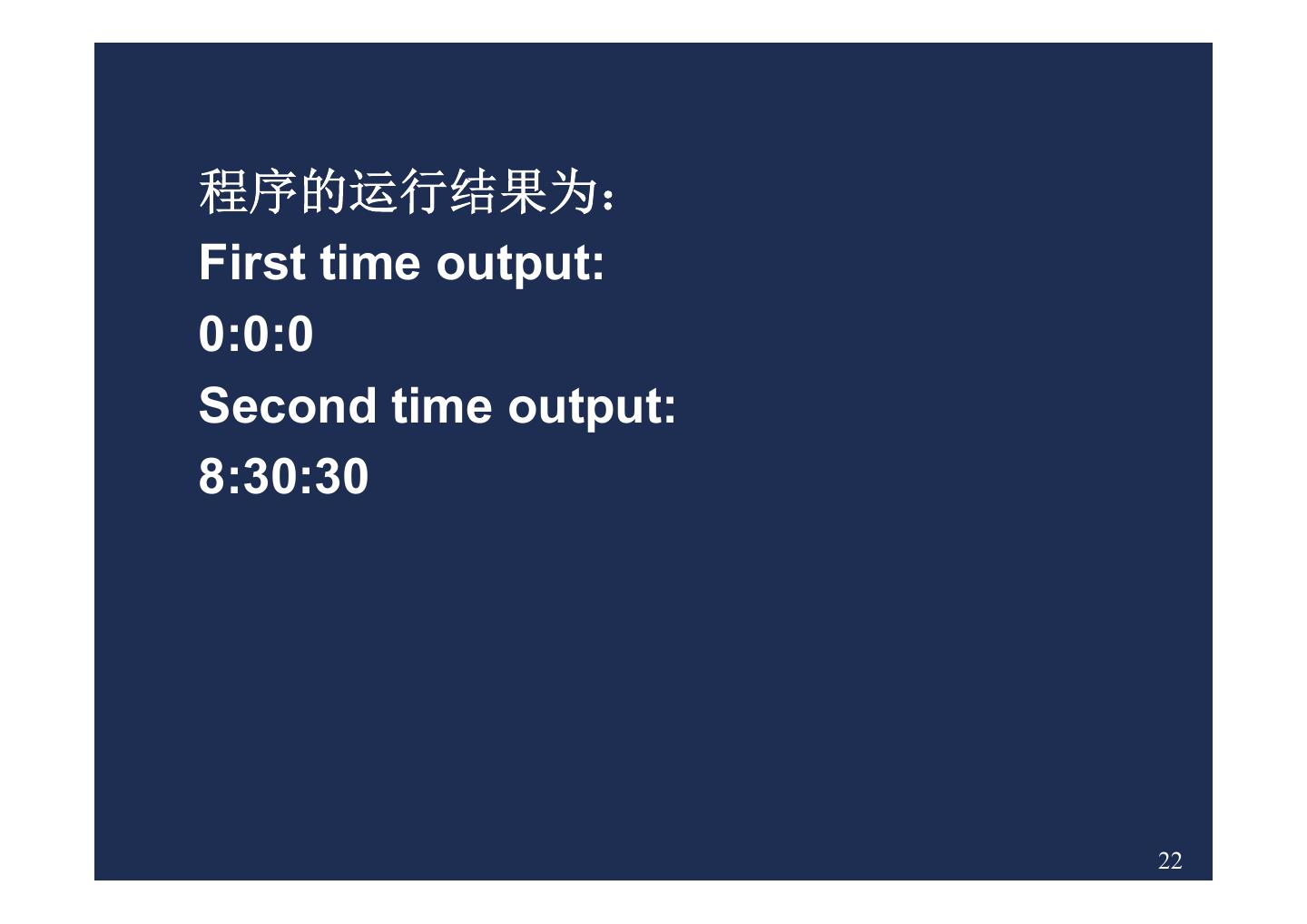 18 .程序的运行结果为: First time output: 0:0:0 Second time output: 8:30:30 22