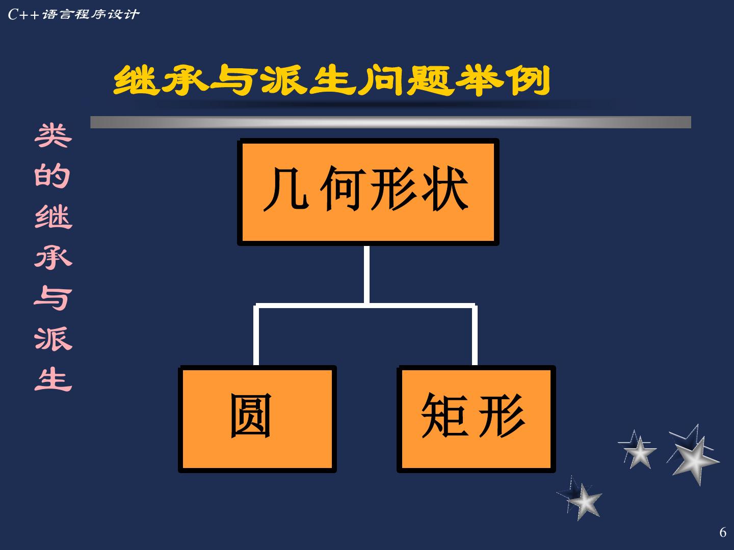 6 .C++语言程序设计 继承与派生问题举例 类 的 几 何形状 继 承 与 派 生 圆 矩形 6