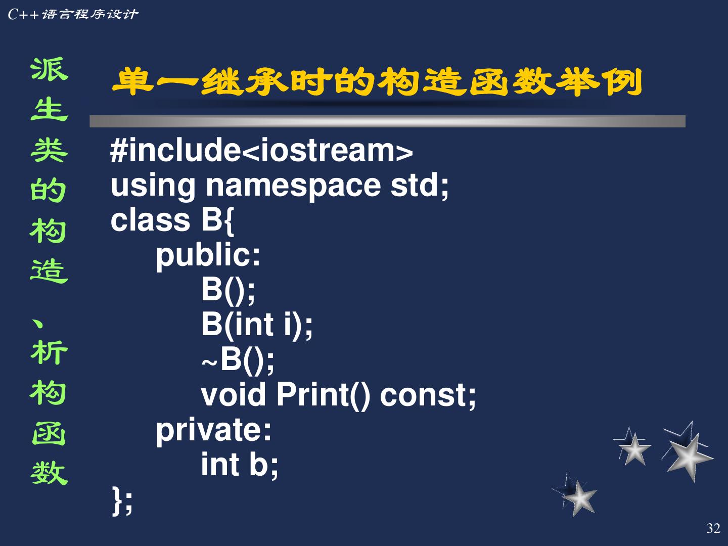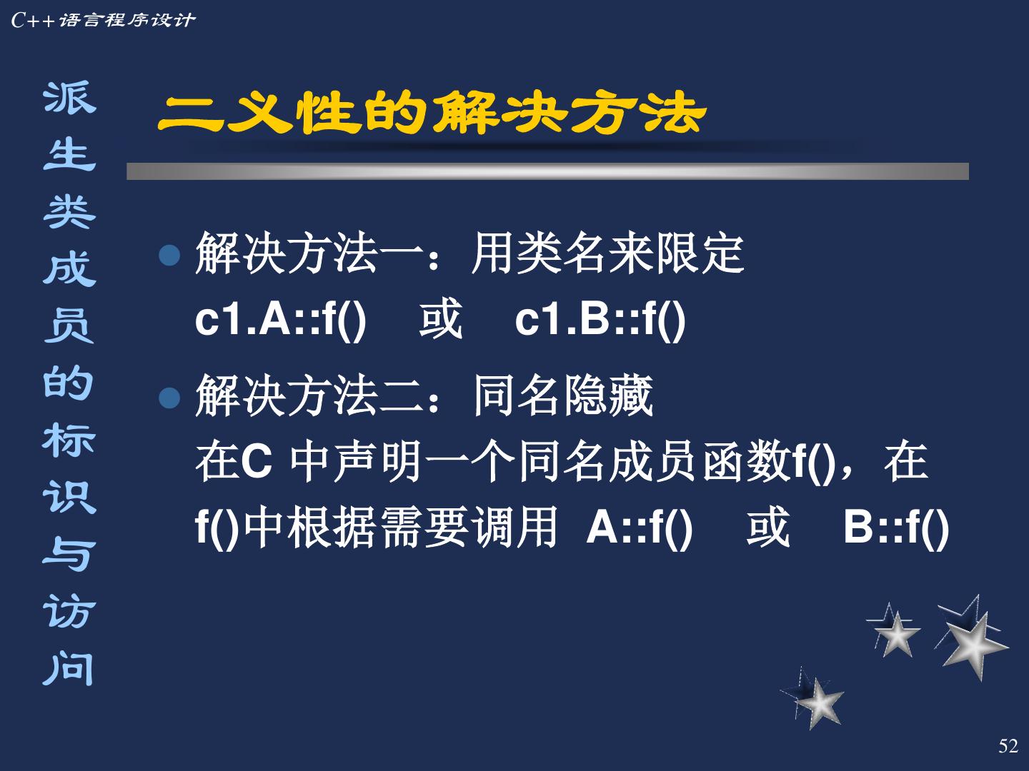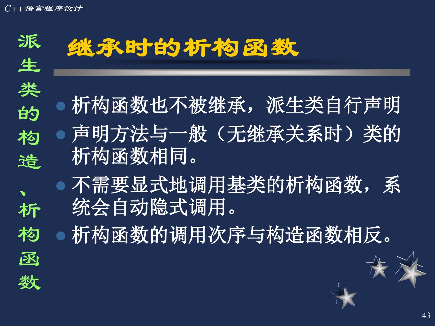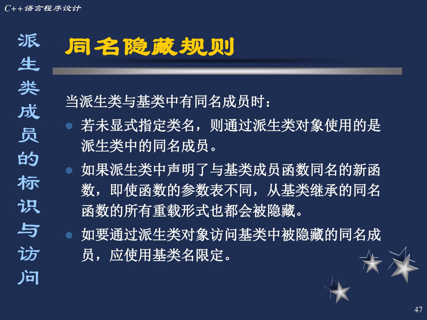 2 .C++语言程序设计 本章主要内容 类的继承 类成员的访问控制 单继承与多继承 派生类的构造、析构函数 类成员的标识与访问 2