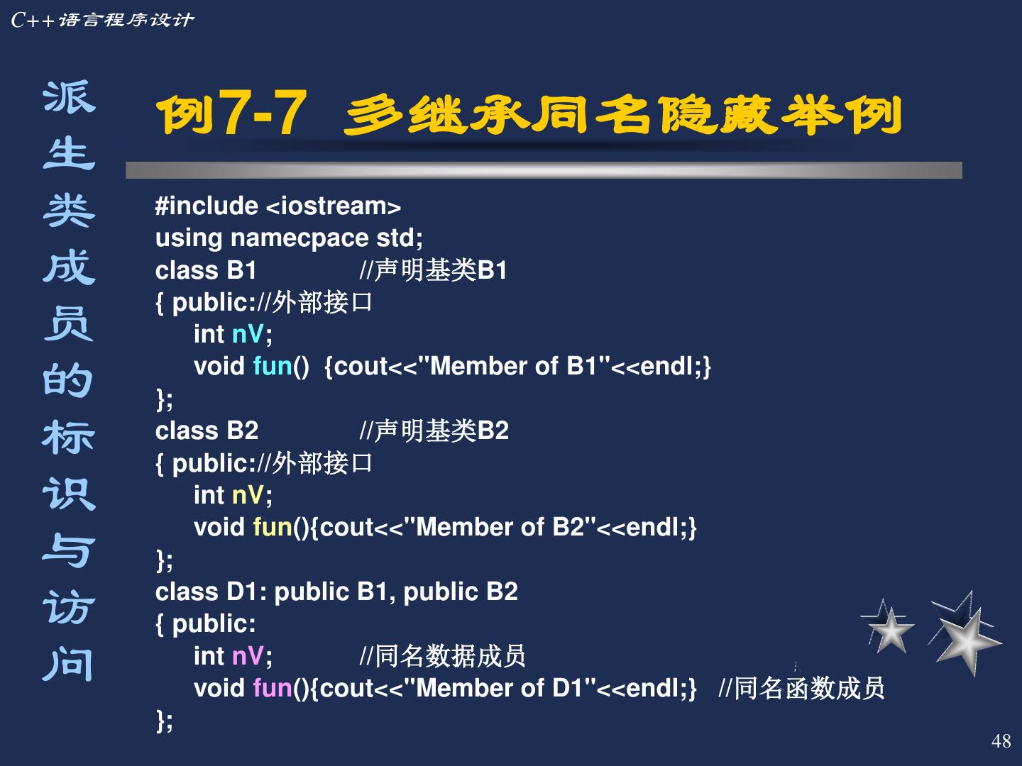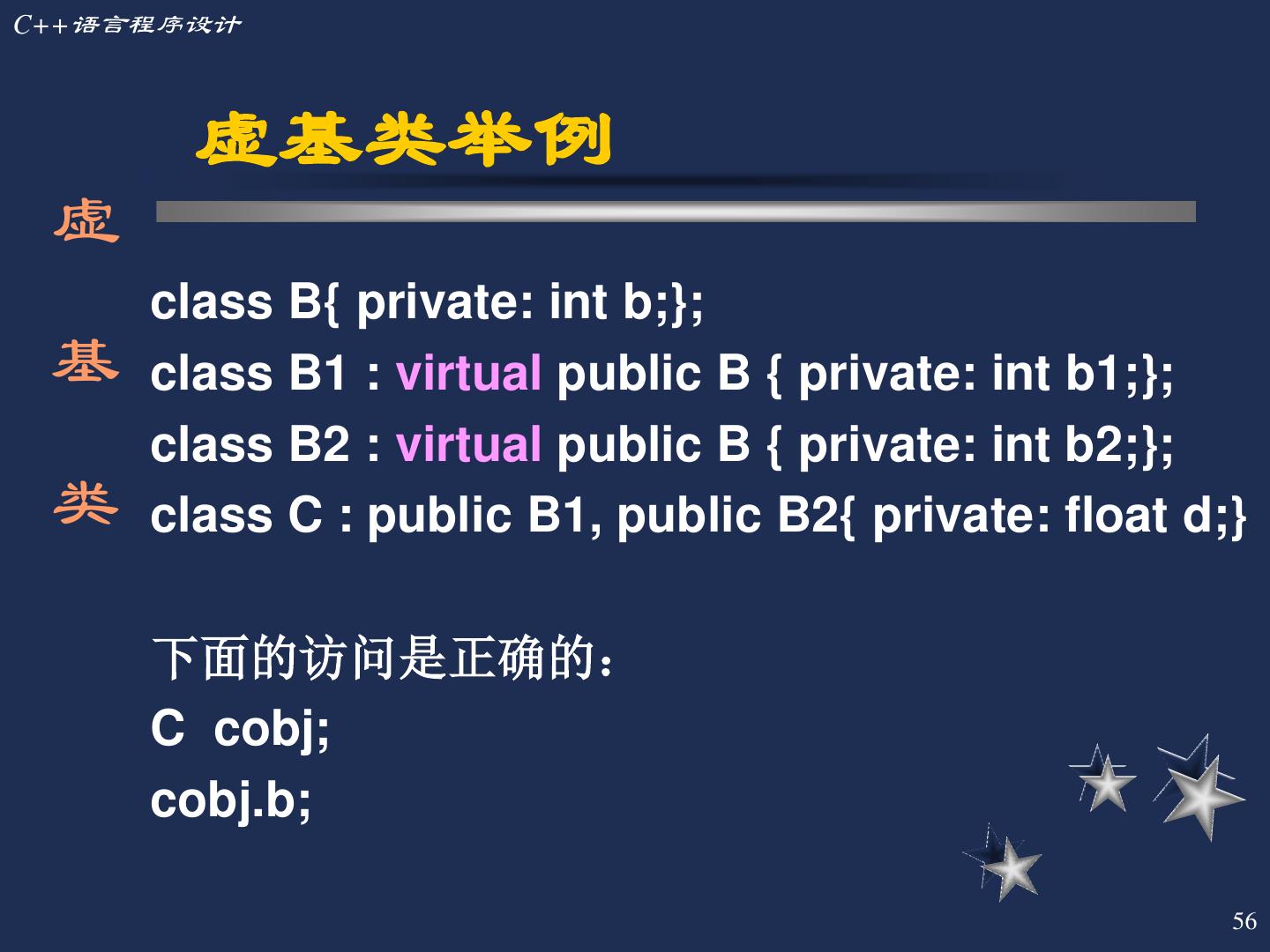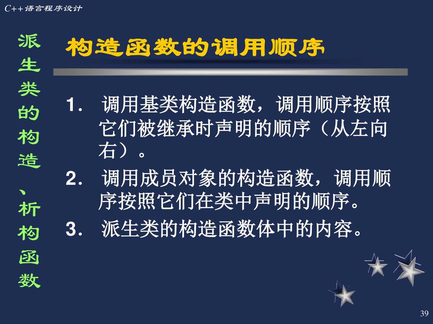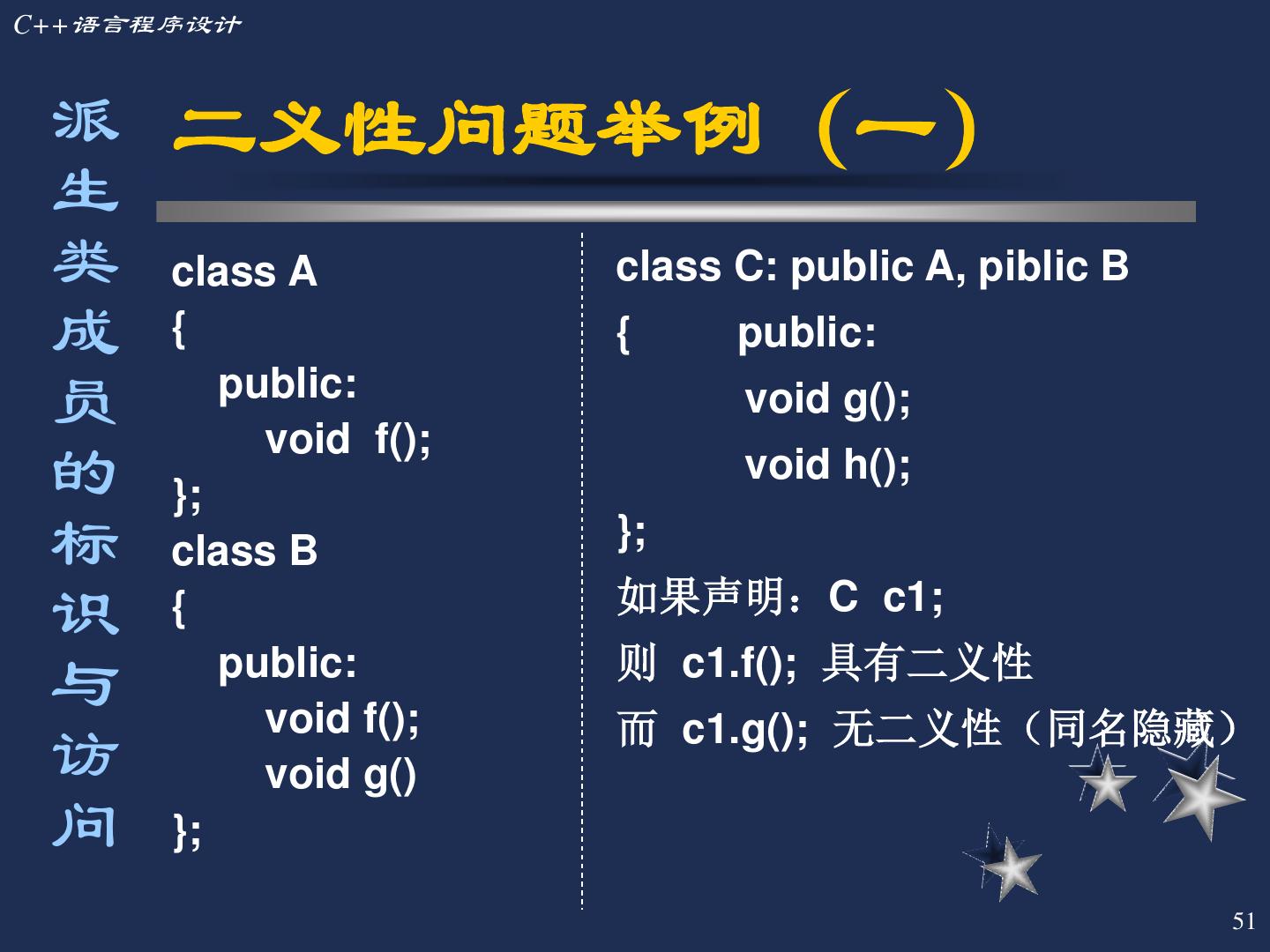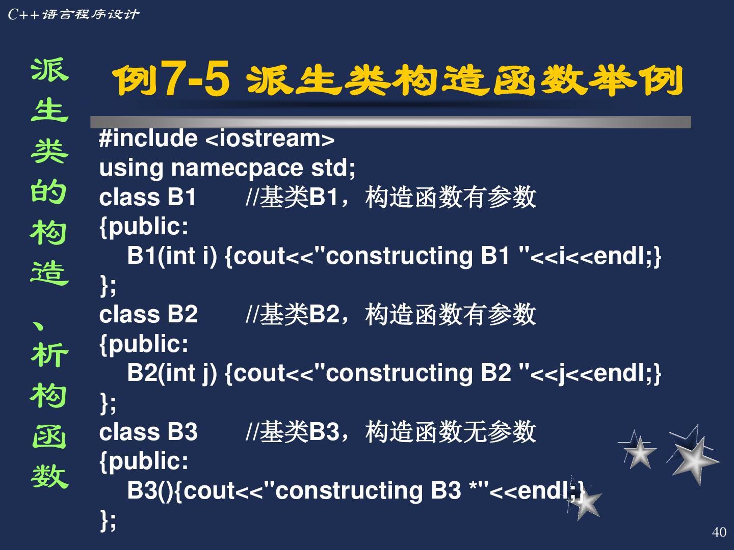 2 .C++语言程序设计 本章主要内容 类的继承 类成员的访问控制 单继承与多继承 派生类的构造、析构函数 类成员的标识与访问 2